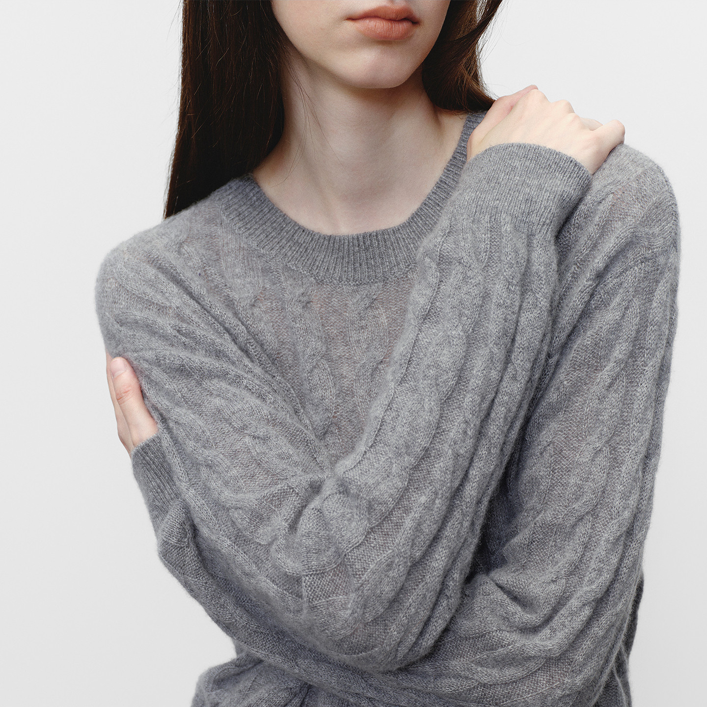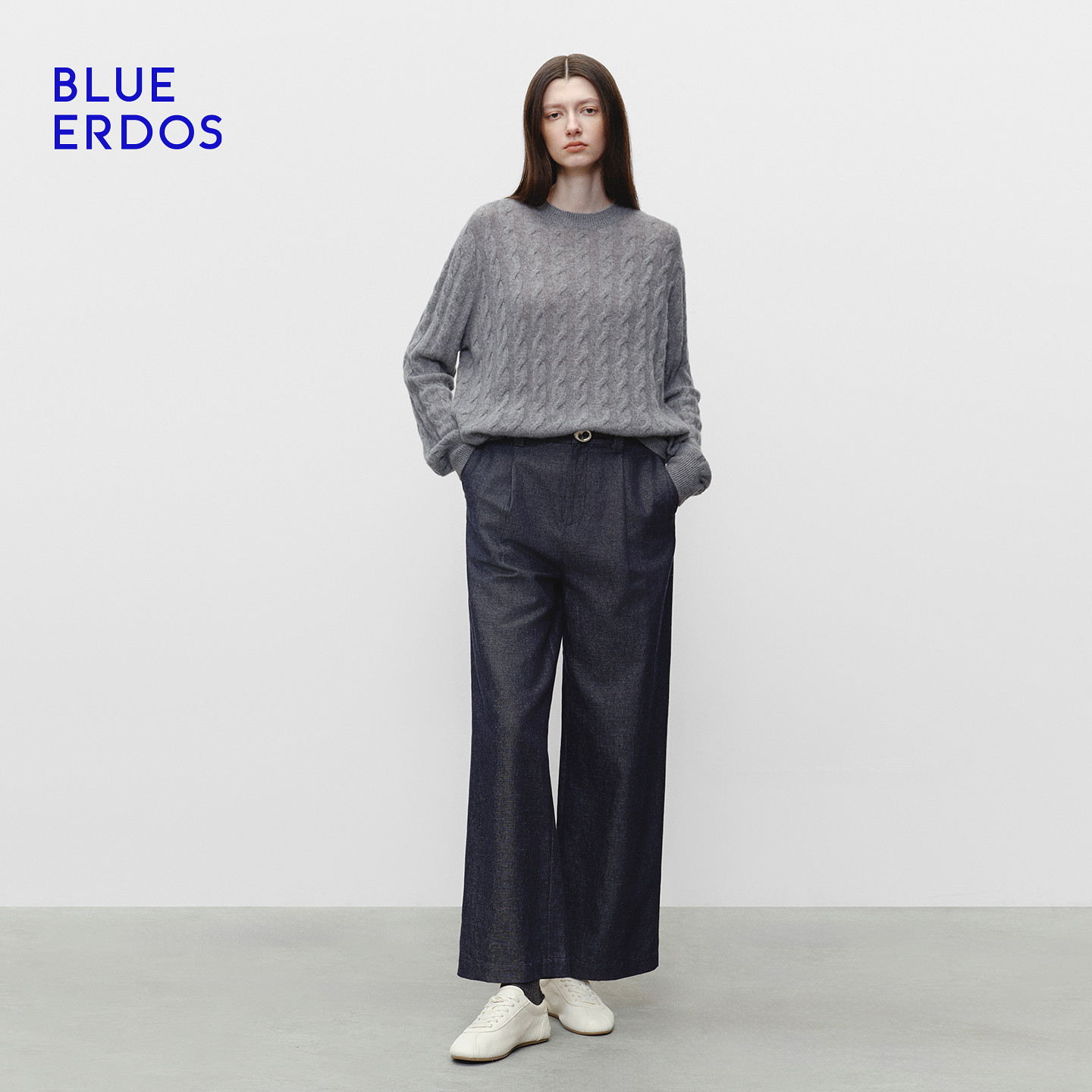 【空气羊绒】BLUE ERDOS冬季新智性通勤100%山羊绒绞花针织衫