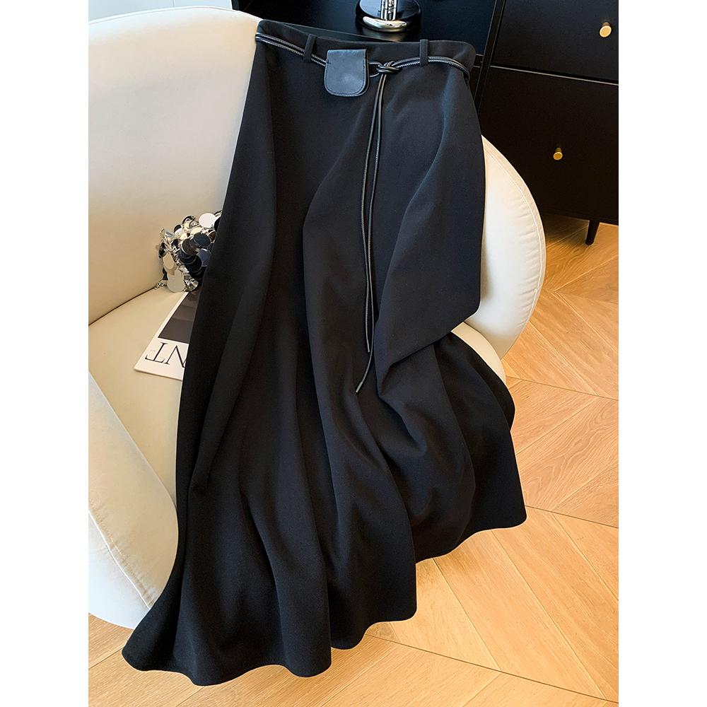 韩系优雅温柔风净色配腰带半身裙女秋季高腰显瘦a字大摆长裙