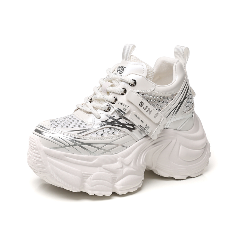 ZFCQ香港水钻黑色内增高老爹鞋女款真皮2025秋新款网面小个子高跟