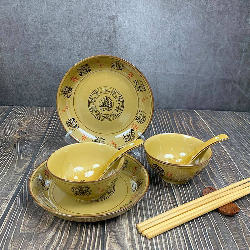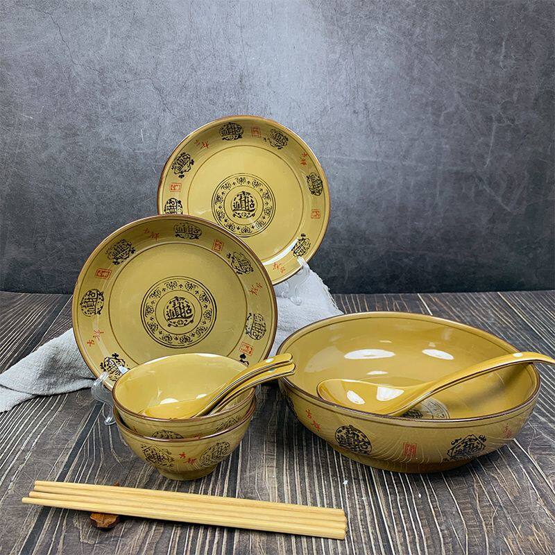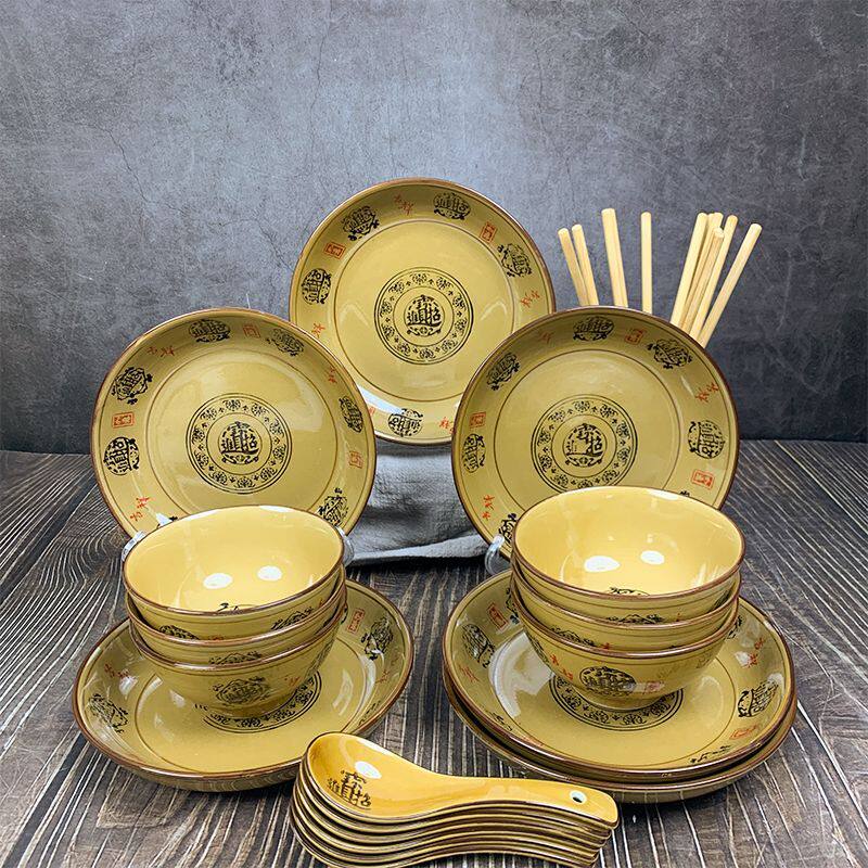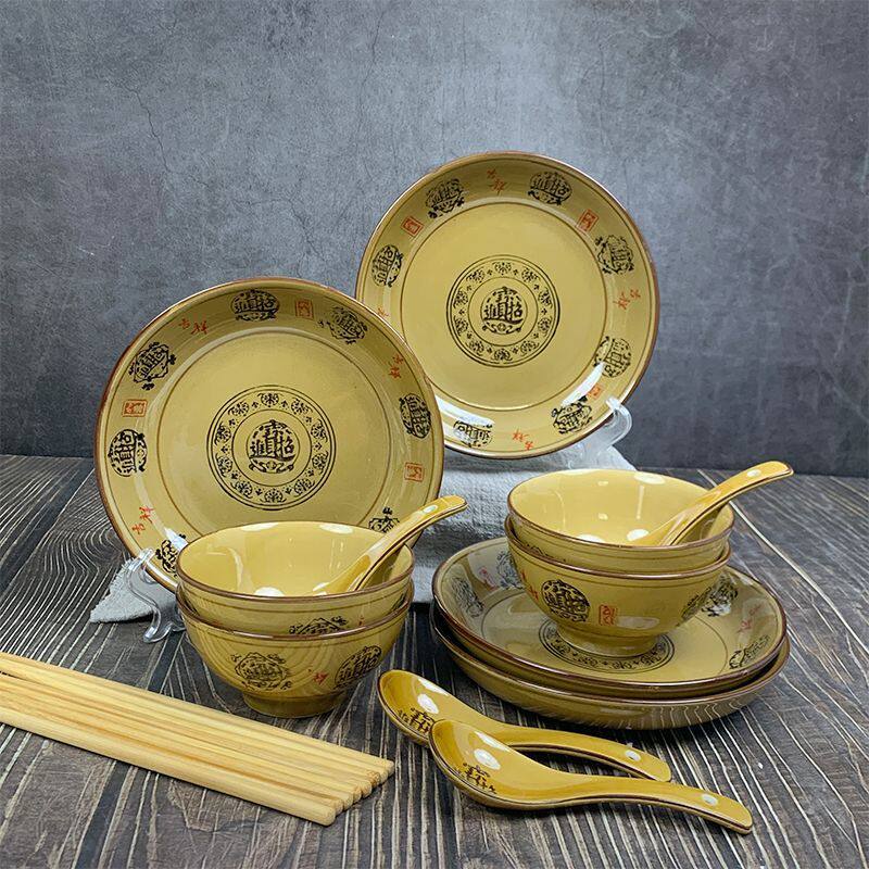 复古饭碗商用菜盘餐厅盘子陶瓷大碗家用招财进宝系列餐具组合套装