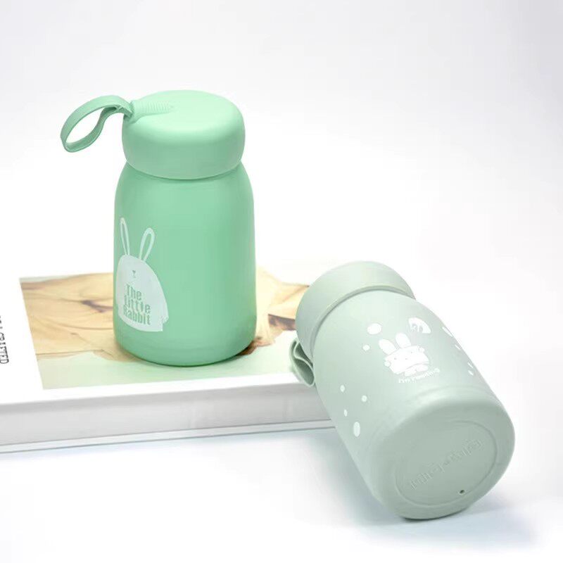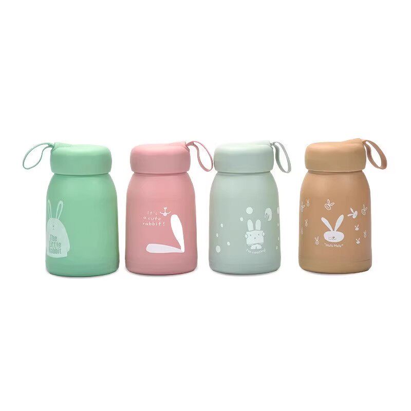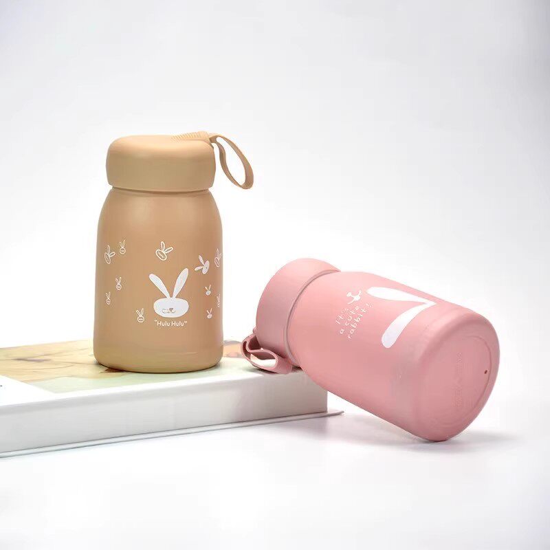 可爱萌萌兔玻璃水杯便携女生带提绳双层广告杯开业活动礼品杯子