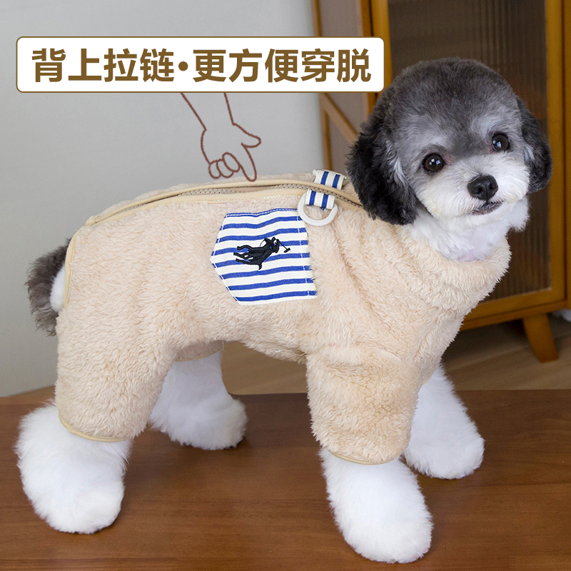 背扣拉链宠物小狗狗衣服比熊泰迪春秋冬装保暖冬天牵引绳四脚绒衣