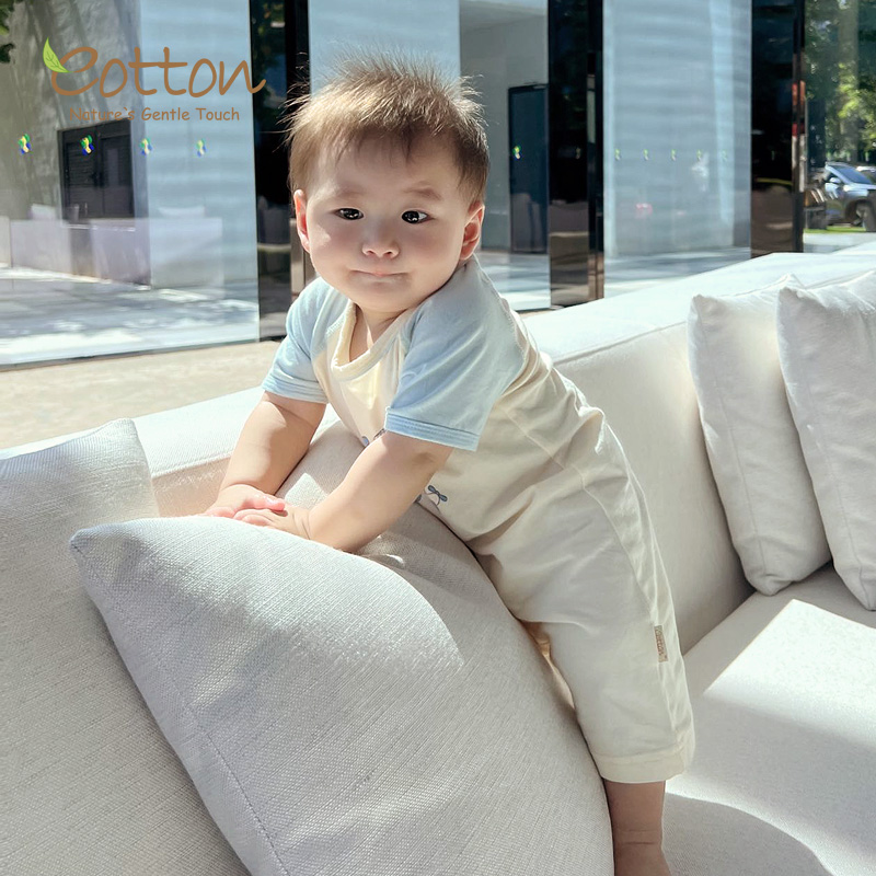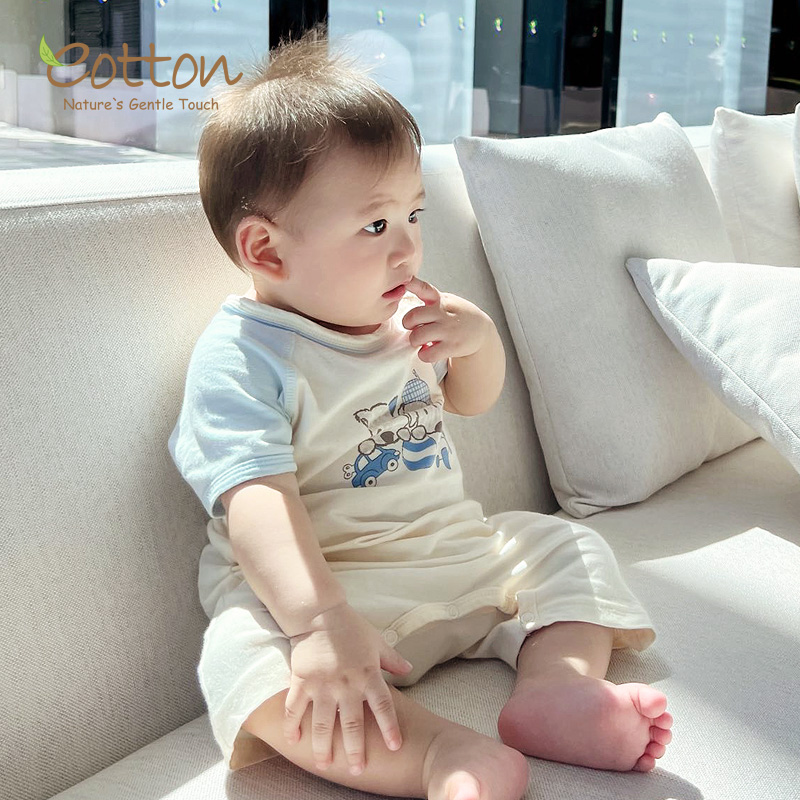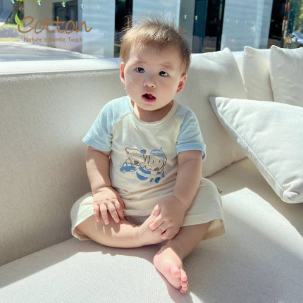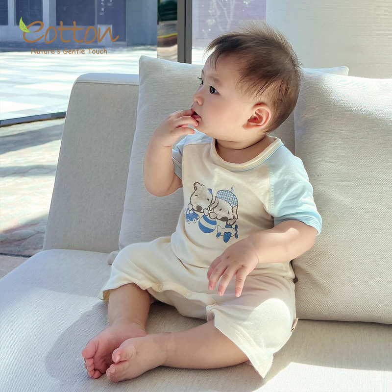 有机棉新生儿夏季服装婴儿短袖连体衣可爱超萌刚出生宝宝短爬夏装