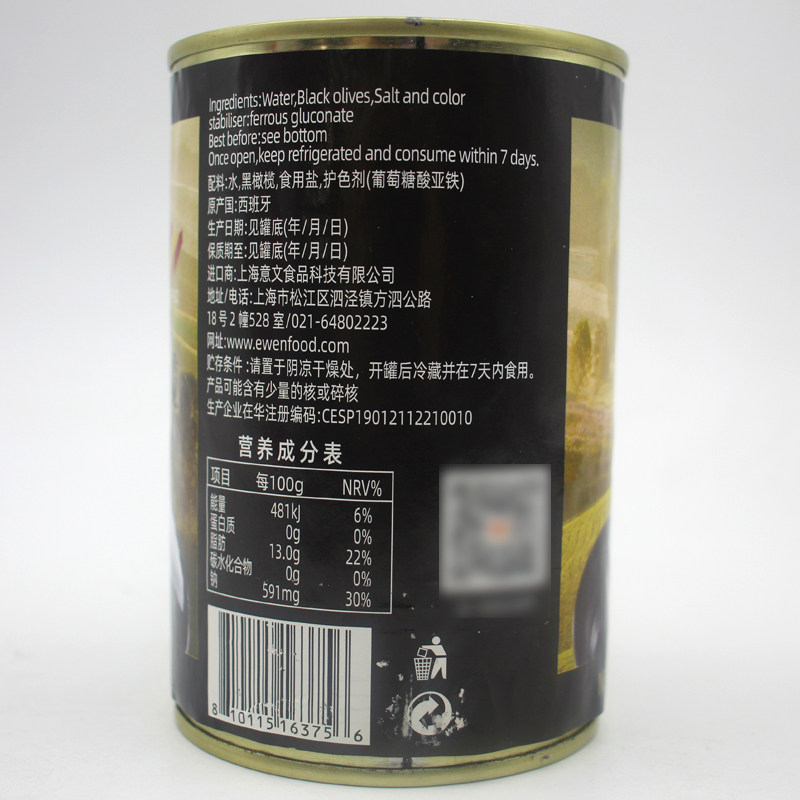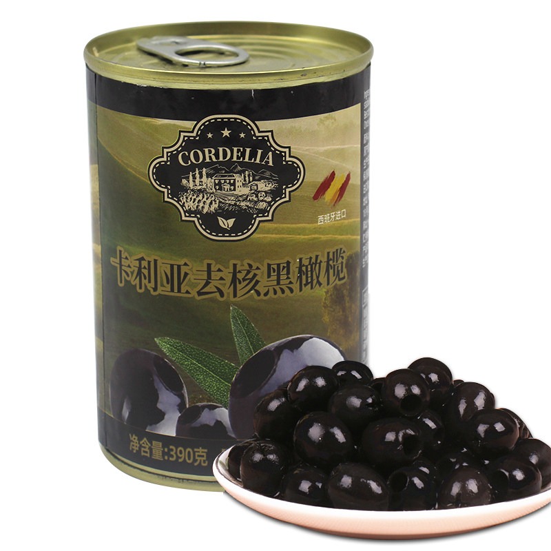 西班牙进口 卡利亚无核黑橄榄390g 意面披萨去核橄榄罐头沙拉原料