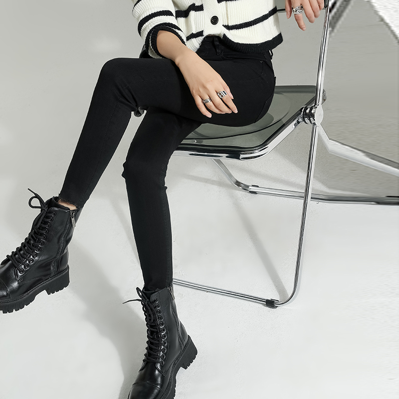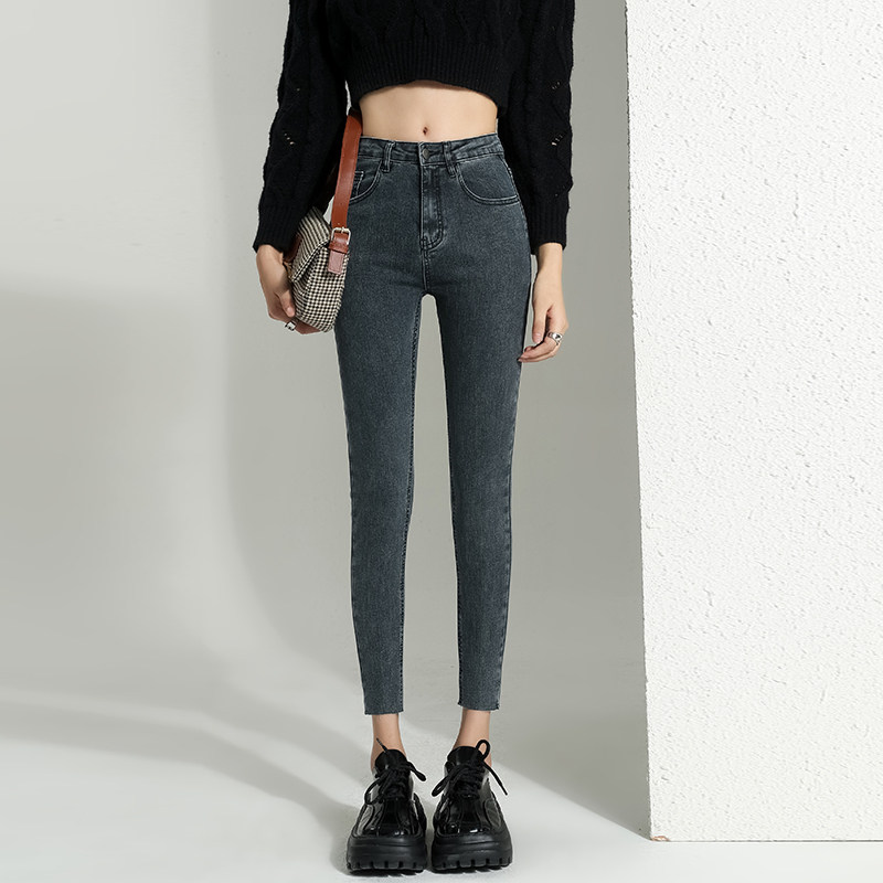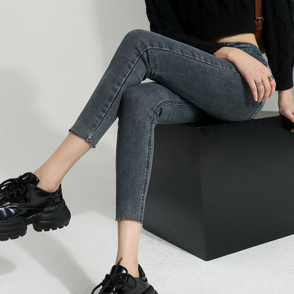 小个子毛边紧身小脚牛仔裤女秋冬