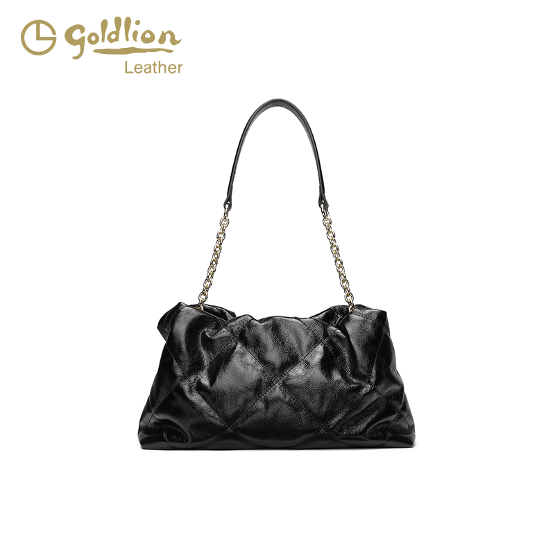 金利来黑色女包真皮软包单肩包2025新款大容量链条斜挎包通勤百搭