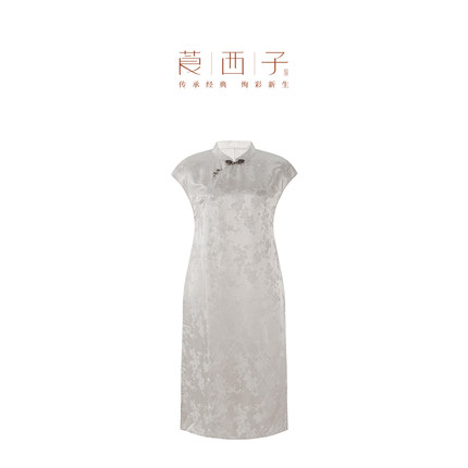 【清】莨西子新中式国风桑蚕真丝改良旗袍裙子女立领收腰连衣裙