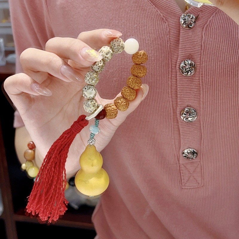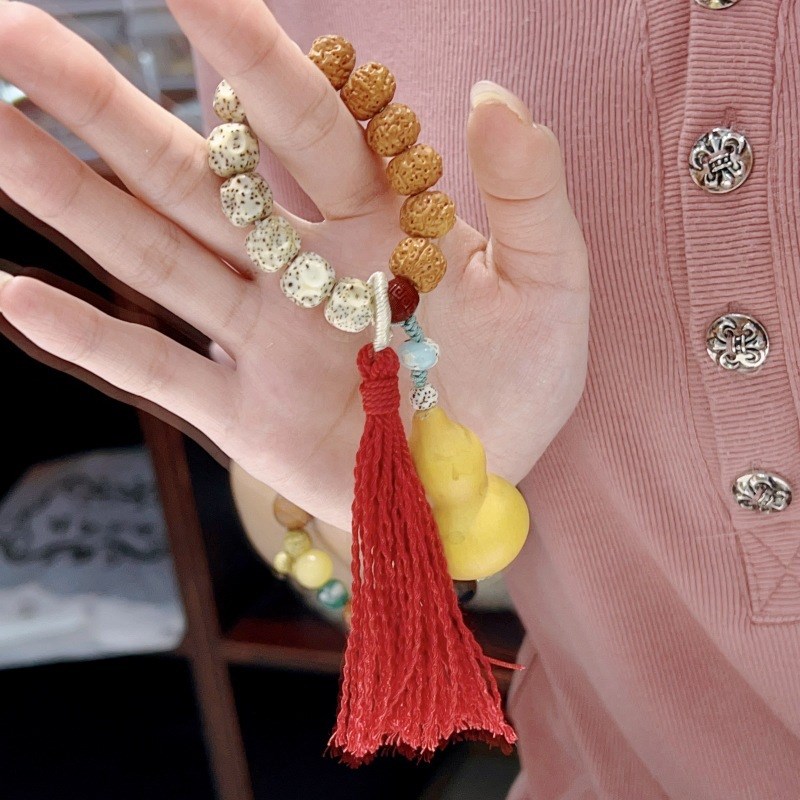 中式葫芦手串复古手捻手串搭配11mm小金H刚和10mm星月菩提流苏手