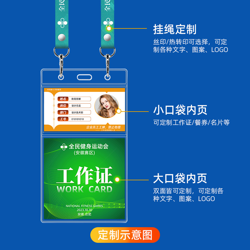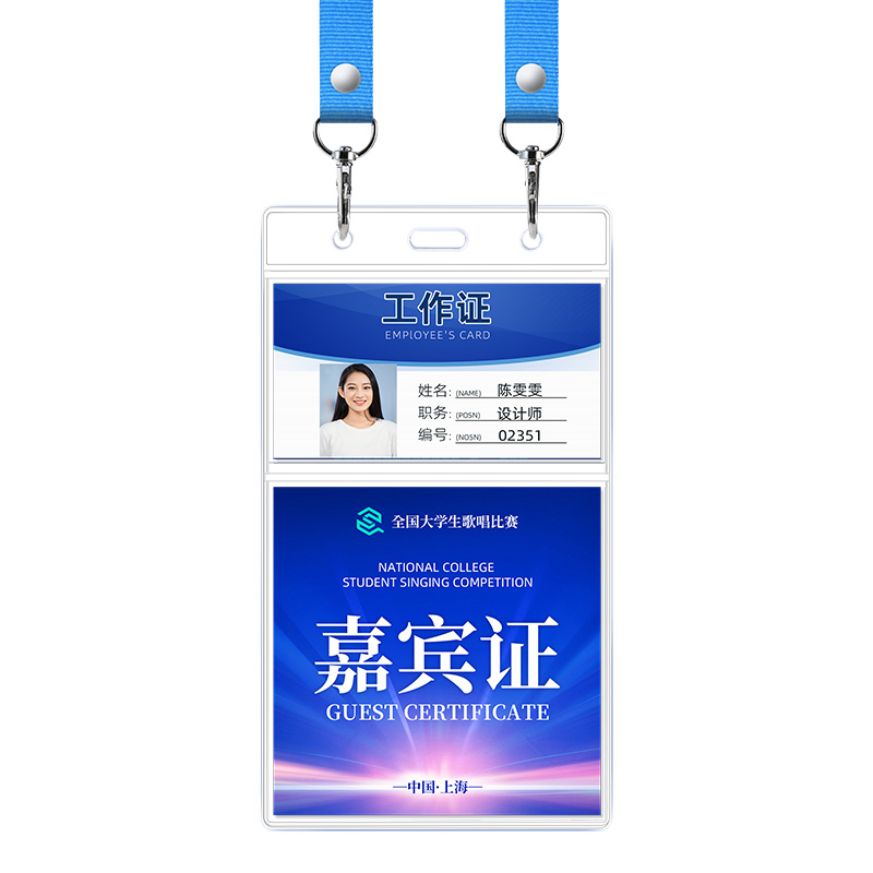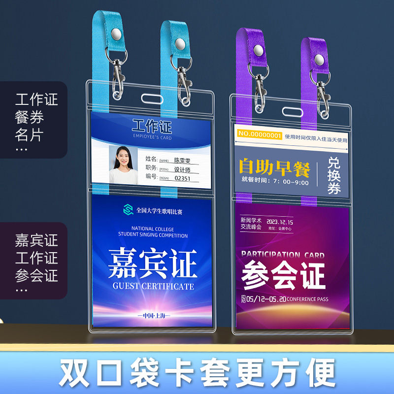 工作牌双口袋卡套会展PVC胸牌套吊牌嘉宾证透明卡套参赛裁判证工作证参展证件卡套高端双扣工牌展会胸卡挂绳