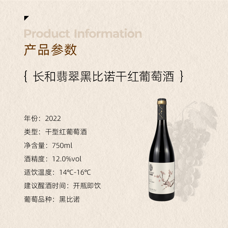 长和翡翠黑比诺干红葡萄酒2022