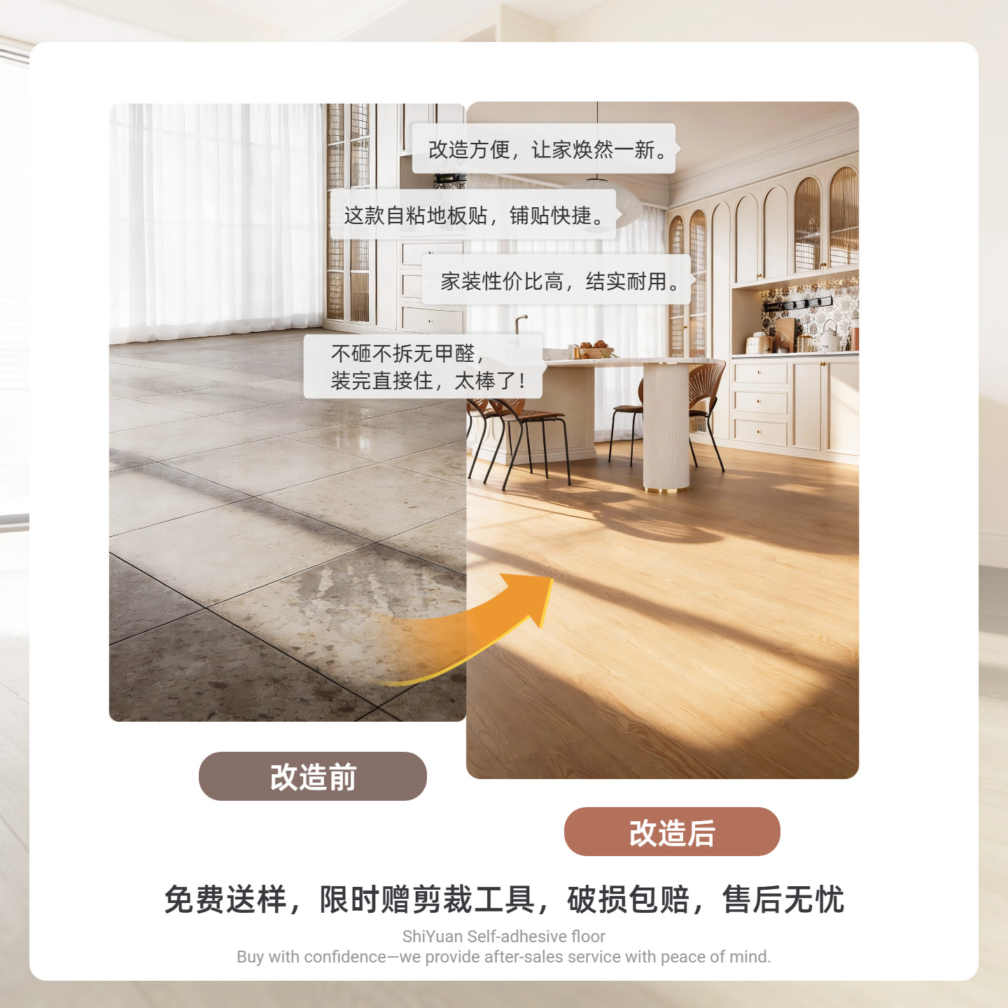 PVC自粘地板贴仿木纹耐磨加厚防水防滑改造地板家用自粘地面翻新