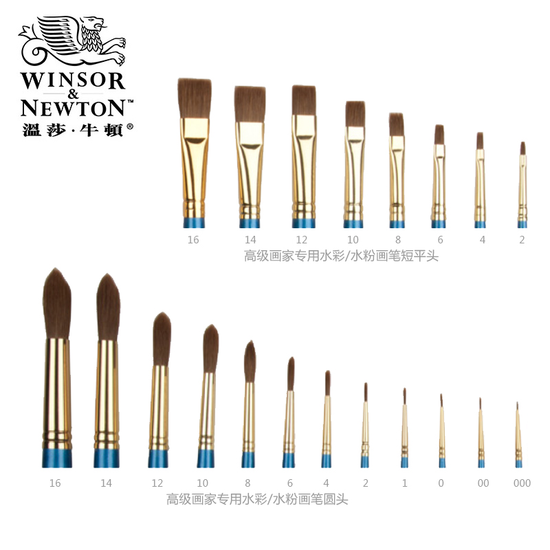 温莎牛顿水彩画笔短杆貂毛固体水粉颜料毛笔美术专用专业套装单支学生初学者圆头平头扇形笔手绘插画