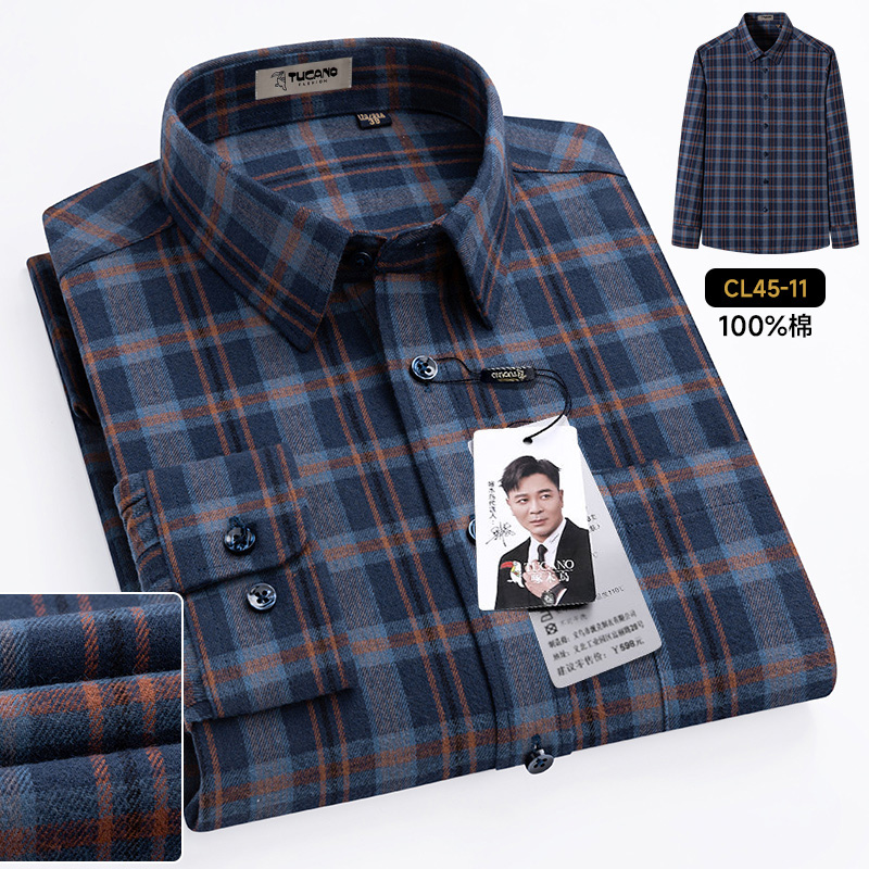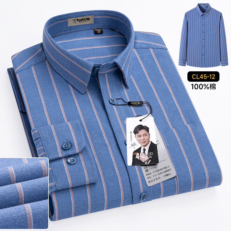 啄木鸟2025秋季纯棉磨毛男士长袖衬衫商务休闲衬衣中年爸爸装寸衫