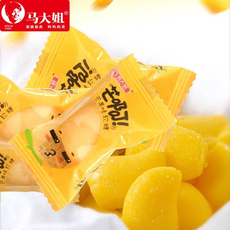马大姐芒果味荔枝味白桃软糖大金玉米桔子高粱饴果汁糖果黑圆软心