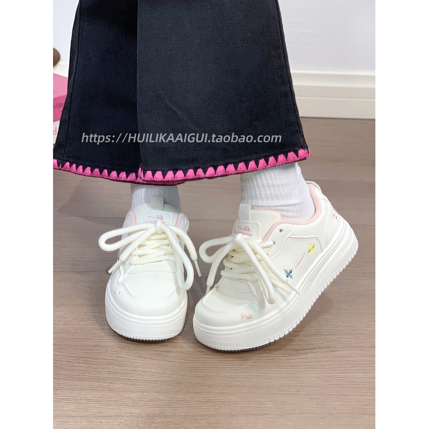 回力黑粉音符板鞋女秋季爆款百搭鞋子小众原创女鞋休闲厚底小白鞋