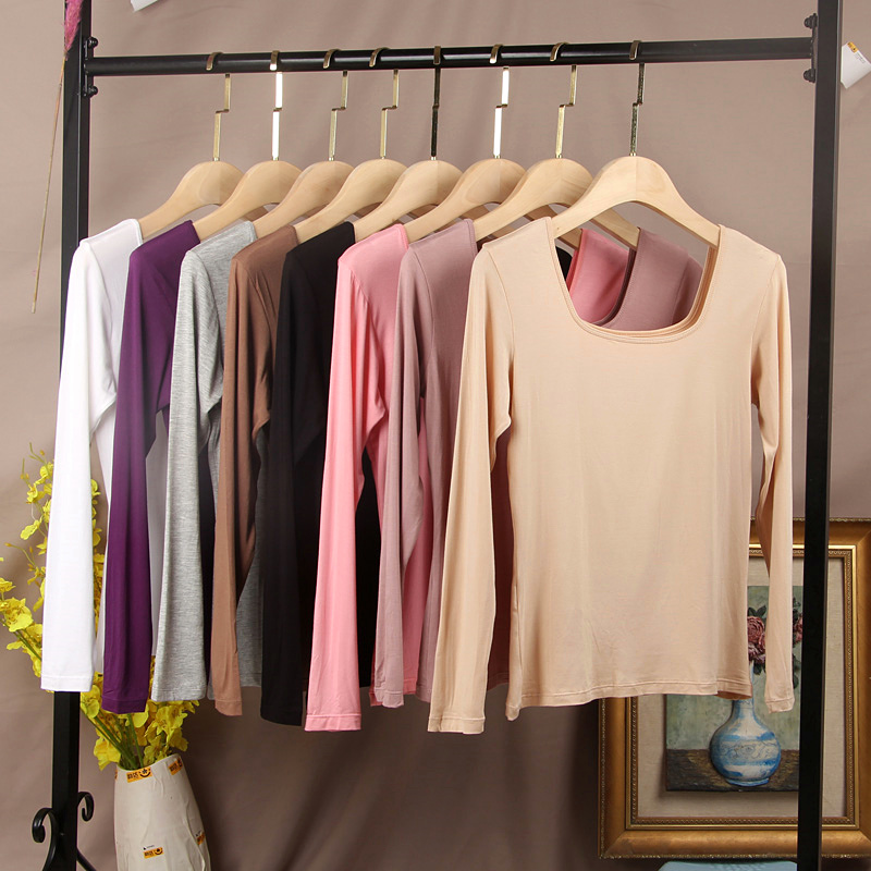 春秋装新款紧身莫代尔打底衫秋季大码女士黑色长袖T恤百搭上衣