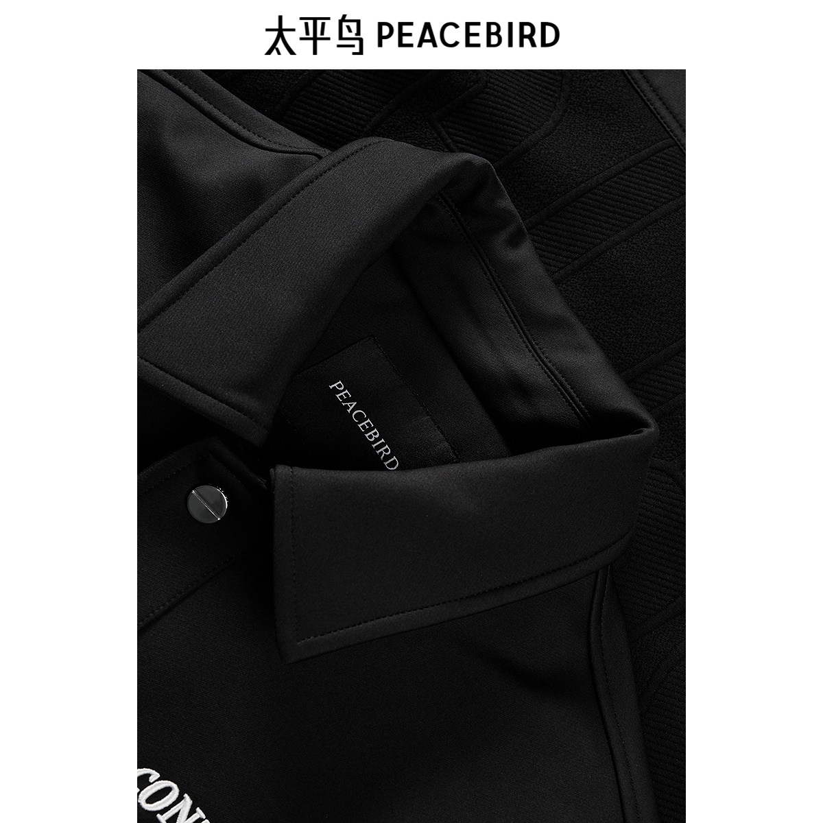 太平鸟男装夹克阔版拼接刺绣翻领外套 B2BCE412G