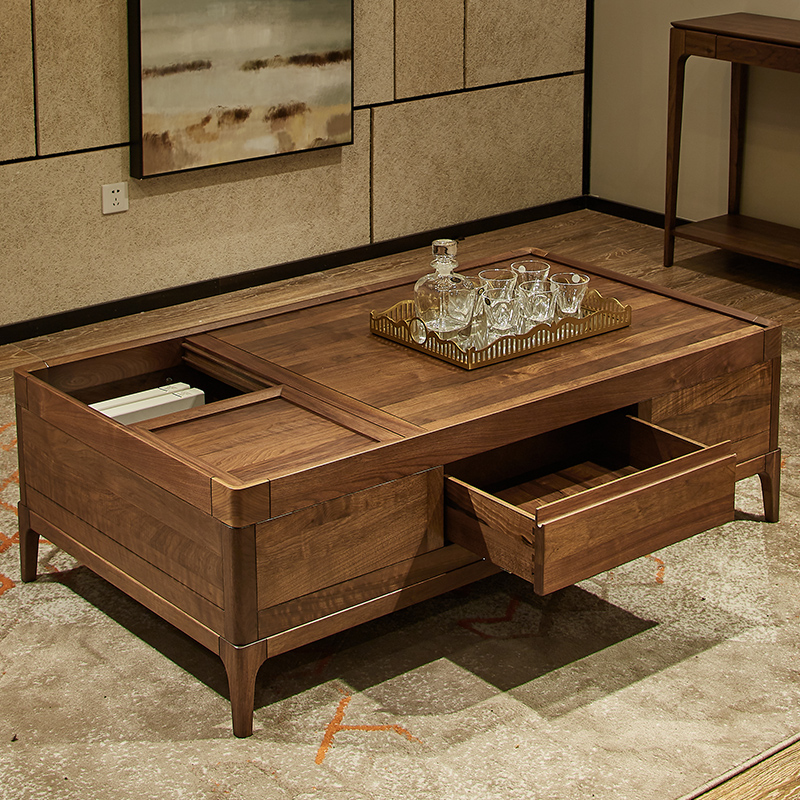 实木茶几简约现代创意茶桌小户型客厅家用意式轻奢黑胡桃原木家具