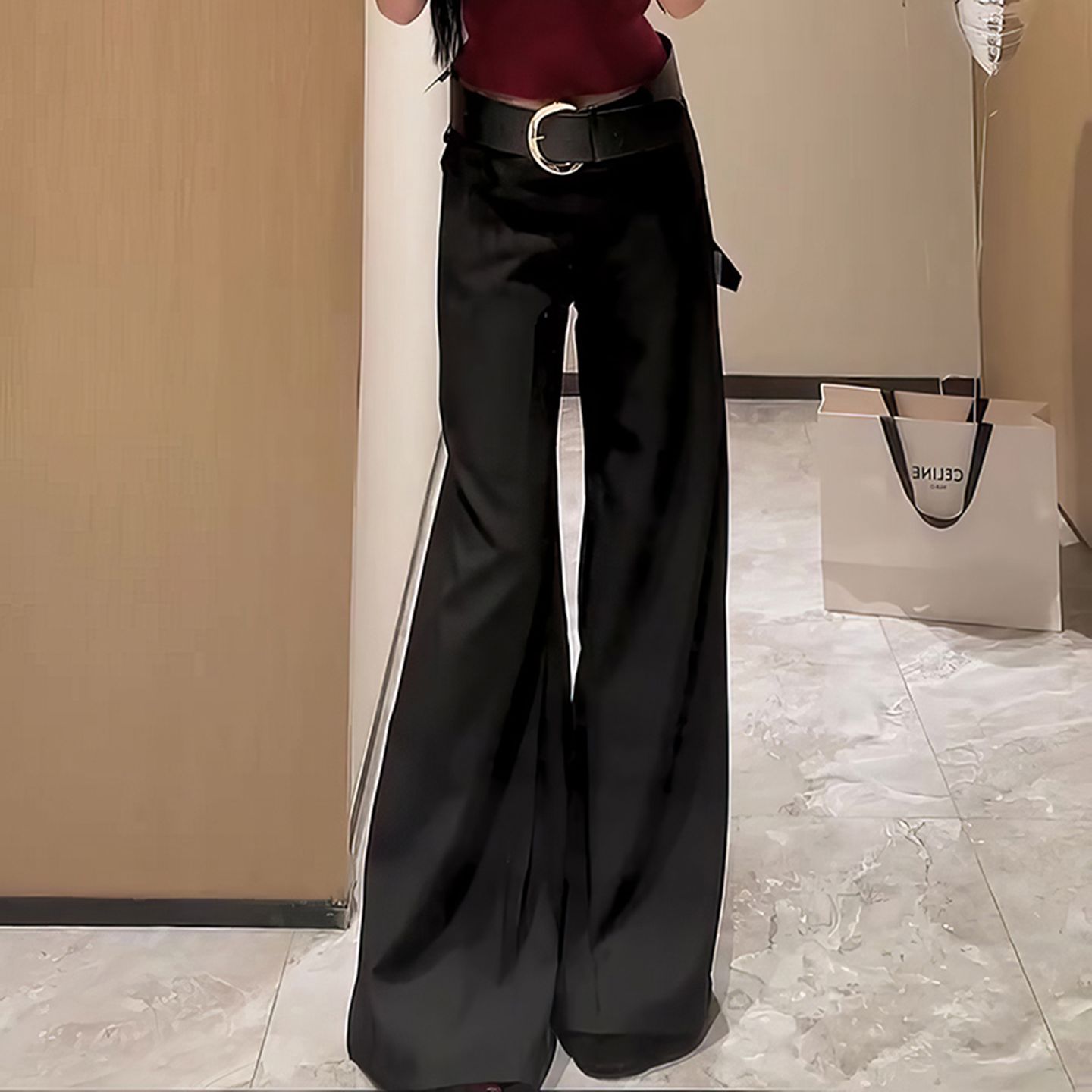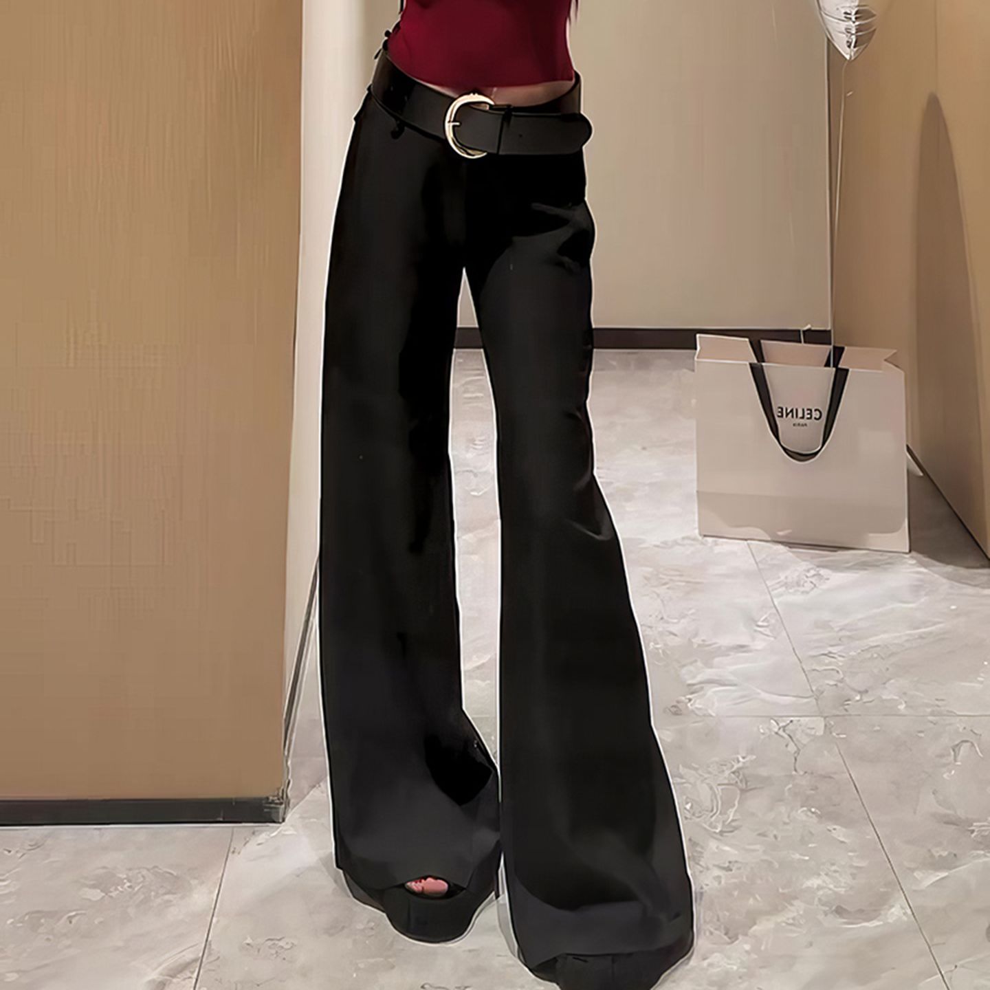 韩系直筒黑色微喇叭阔腿裤流行时尚百搭休闲裤子女2025秋季新款