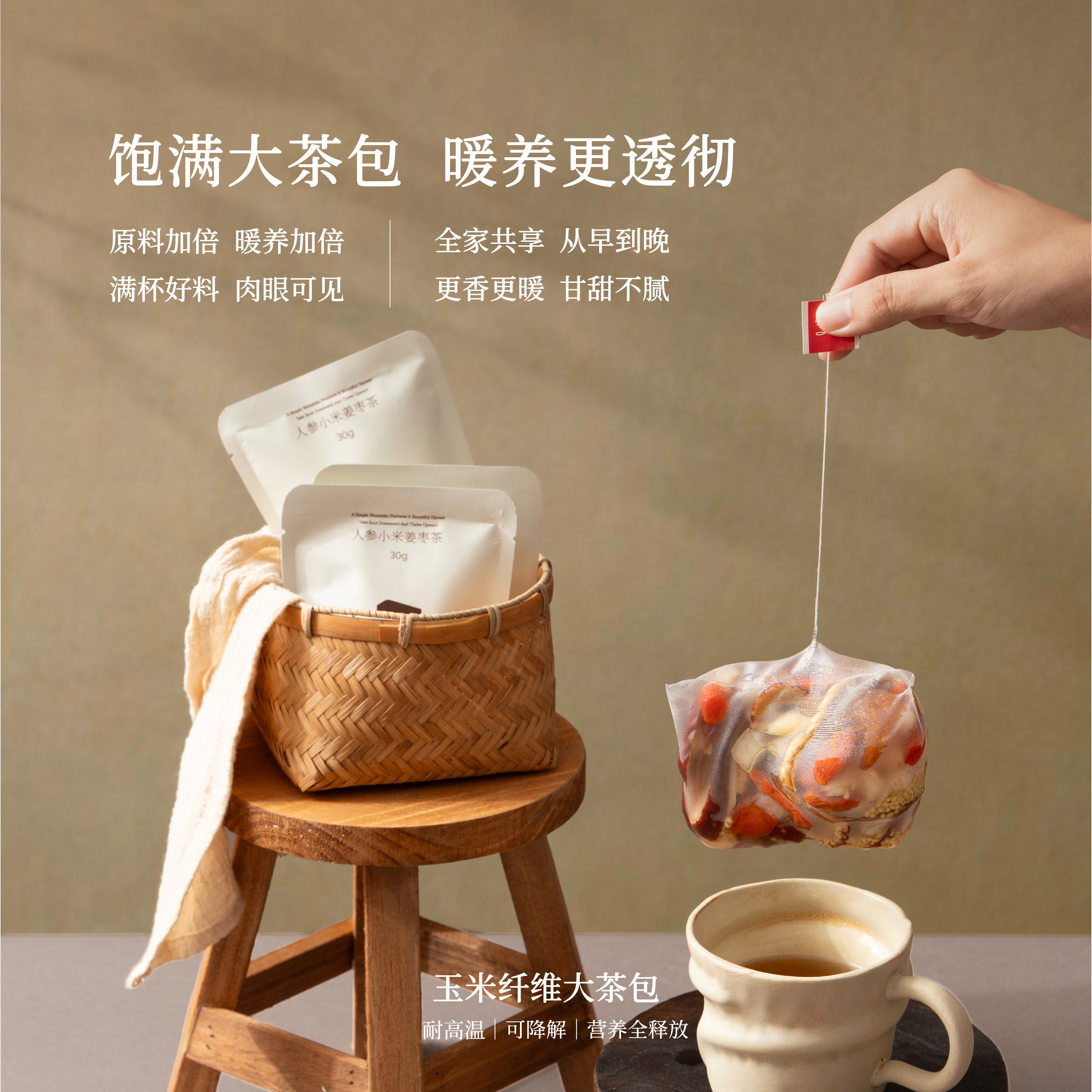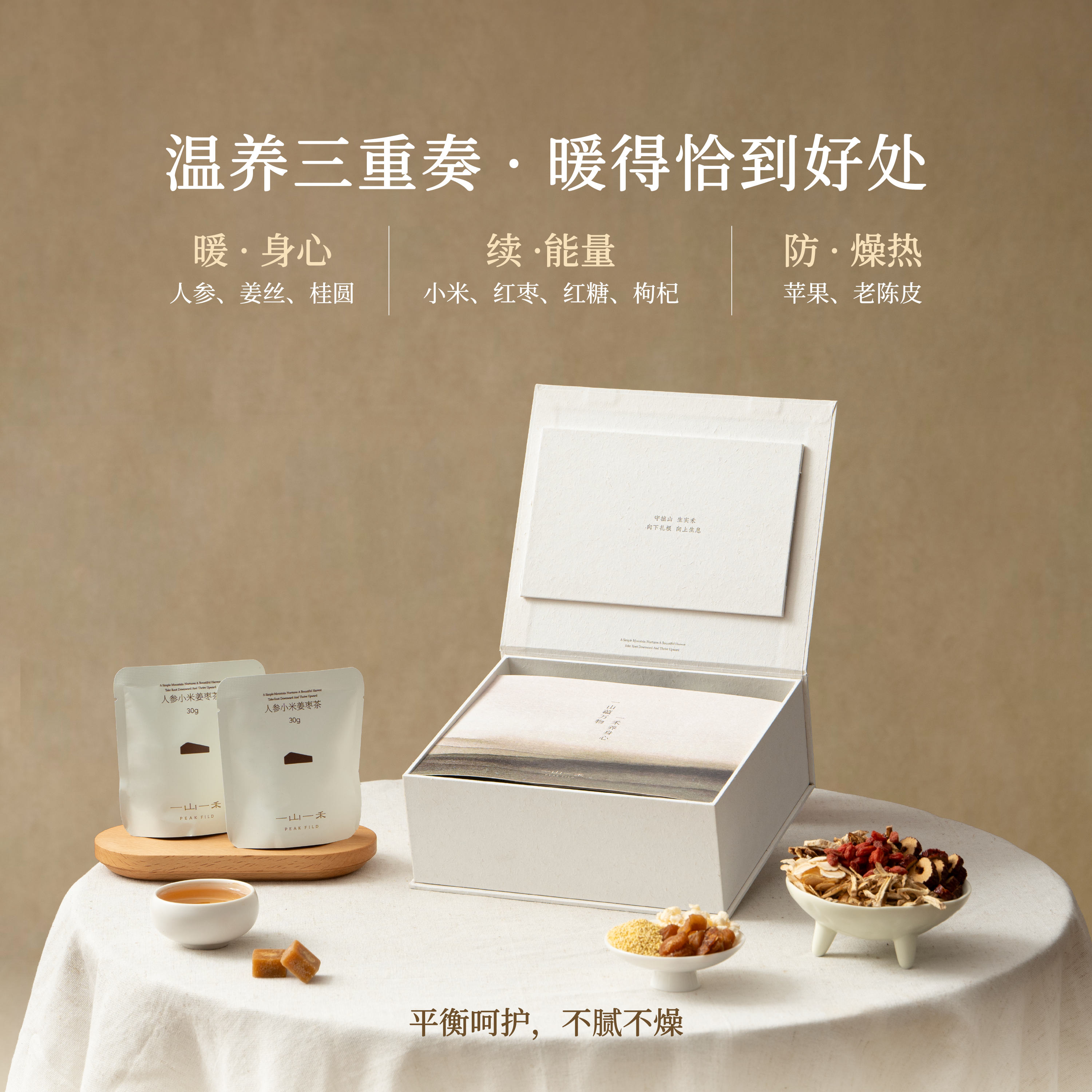 一山一禾人参小米姜枣茶红糖桂圆红枣枸杞养生茶包补气血姜茶礼盒