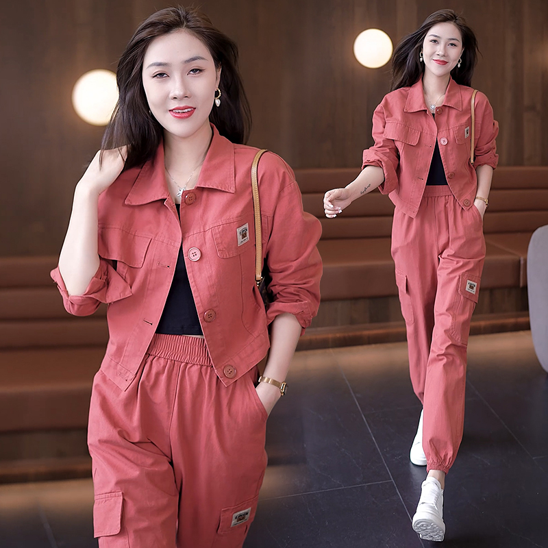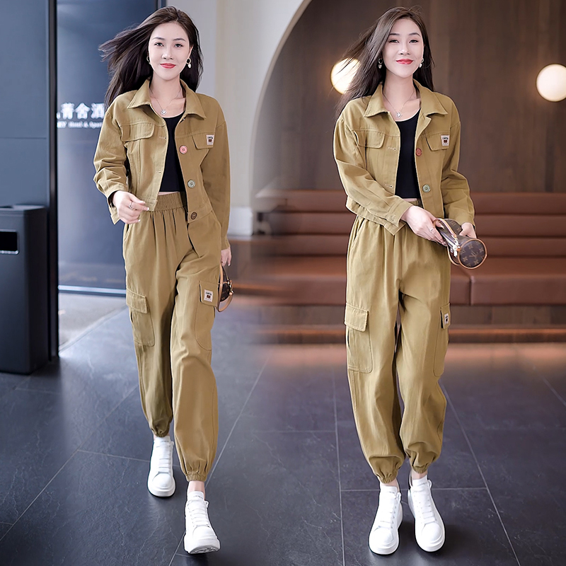 时尚宽松短款工装外套束脚裤两件套女2025春秋季新款洋气减龄套装