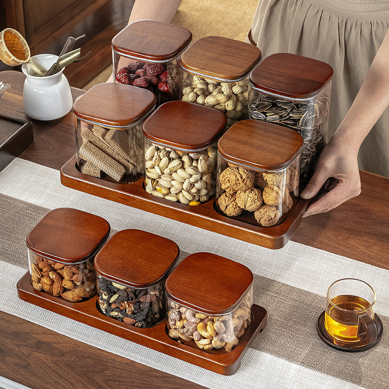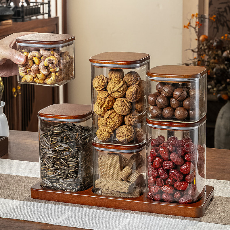 方形玻璃密封干果盘家用客厅茶几瓜子花生坚果盘糖果零食收纳盒