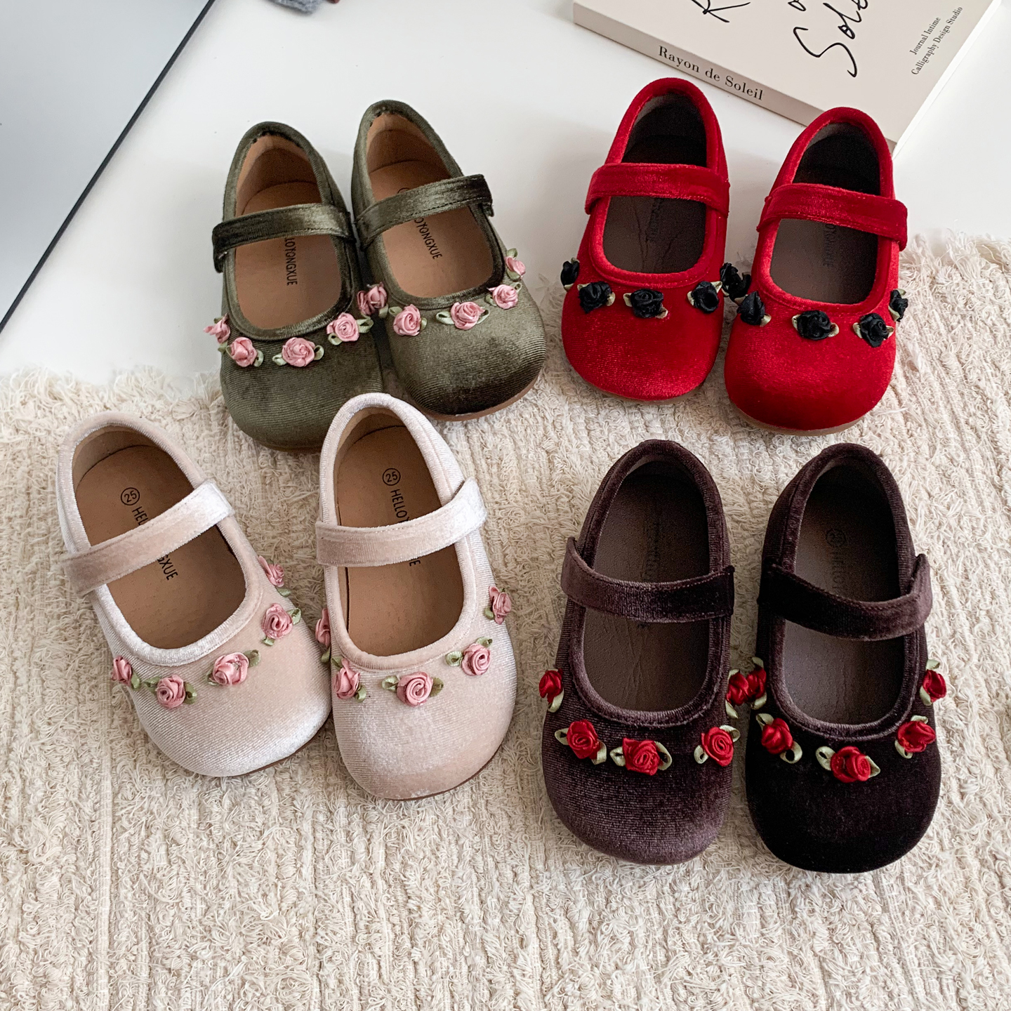 慕葵家女童公主鞋秋季宝宝丝绒复古中式小女孩单鞋软底洋气儿童鞋