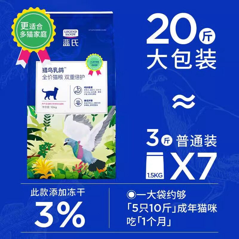 蓝氏猎鸟乳鸽猫粮10kg成猫幼猫全价通用冻干粮繁育高蛋白营养