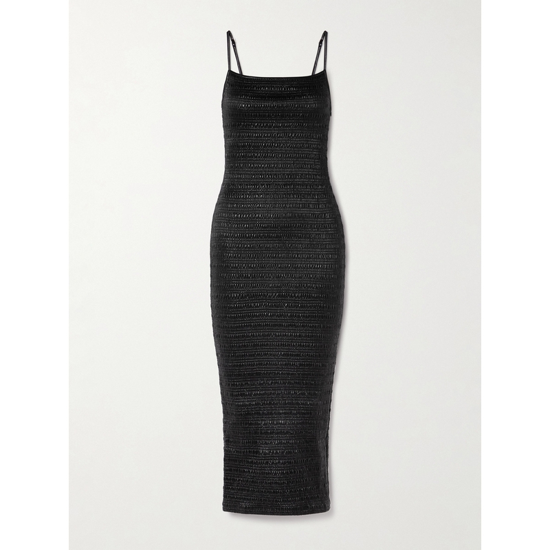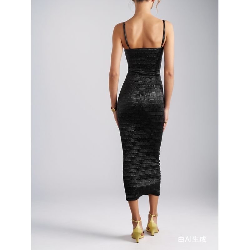 【折扣】Nanushka 女士平行绉缝人造皮革中长小黑裙吊带连衣裙