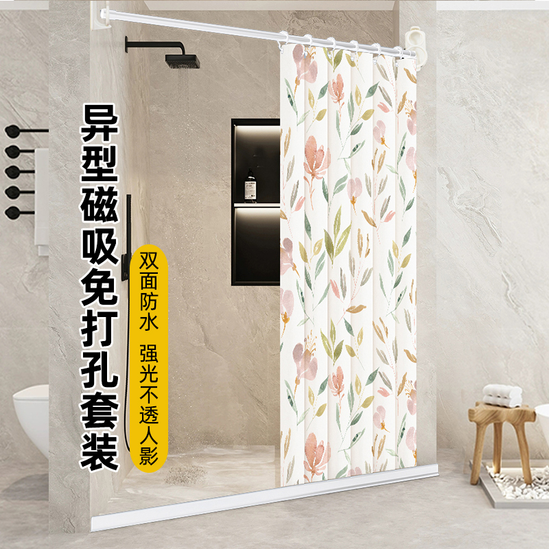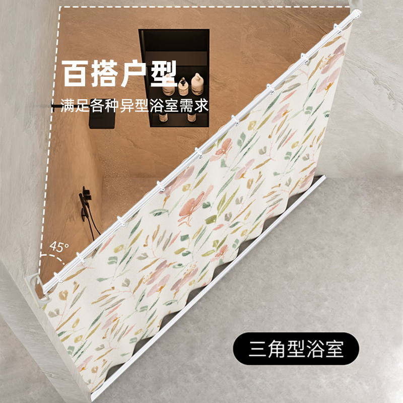 异型卫生间浴帘防水布加厚防霉挂帘子浴室帘洗澡隔断帘免打孔窗帘