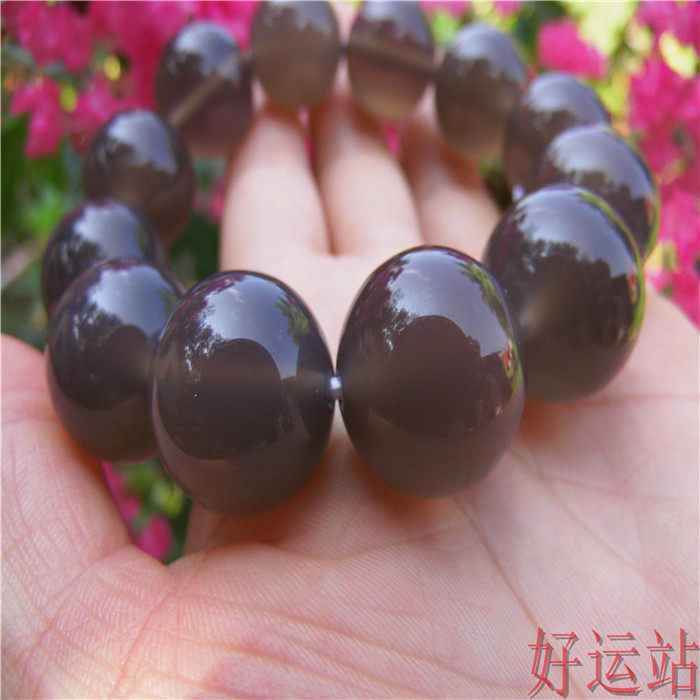 新款占运站天然灰玉髓男女款手串玛瑙圆珠手链宝石手珠玉饰佛珠