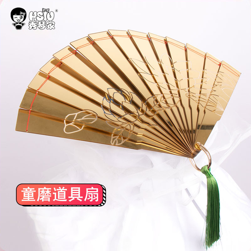 秀琴家 童磨cos道具扇子 雕刻莲花 鬼灭之刃cosplay金色折扇