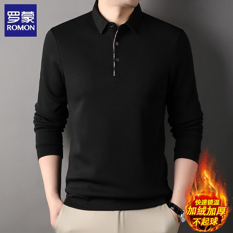 罗蒙加绒polo衫男长袖t恤冬季商务休闲加厚保暖上衣男士打底衫