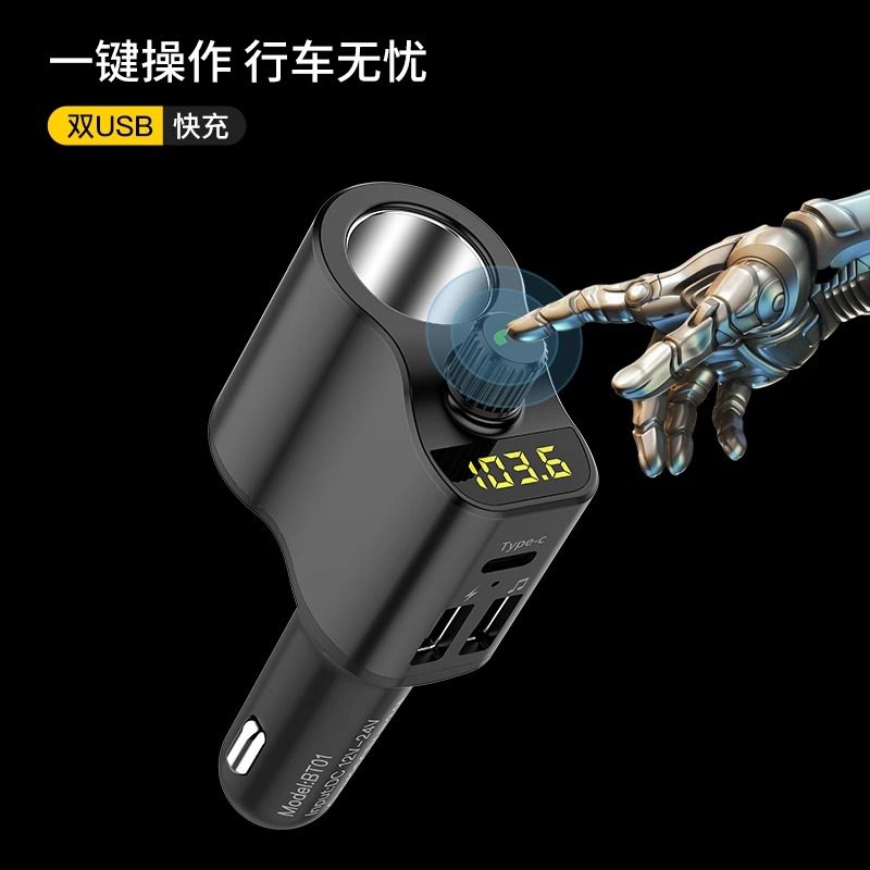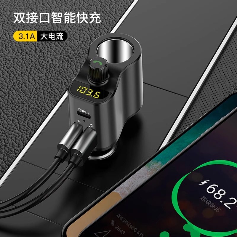 车载充电器一拖三蓝牙MP3播放器多功能U盘快充汽车点烟器转换插头