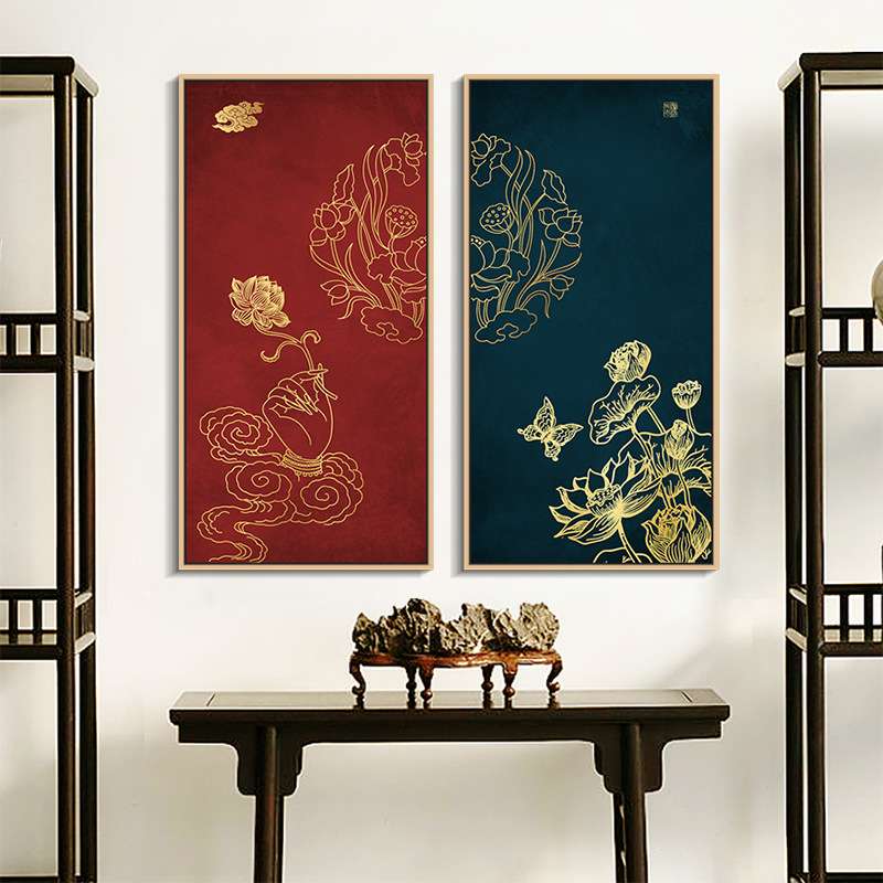新中式中国风入户过道玄关装饰画客厅现代简约中式挂画竖版走廊