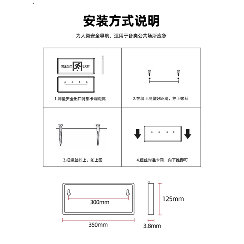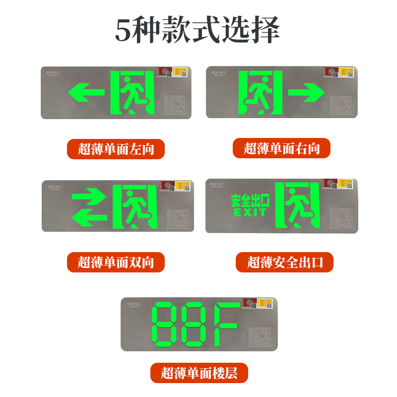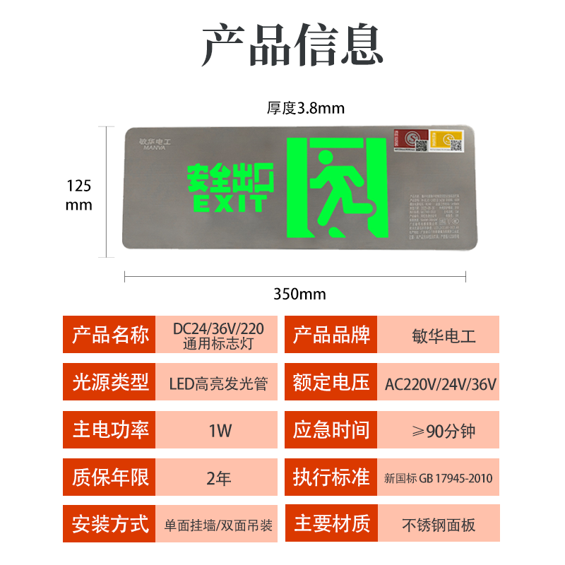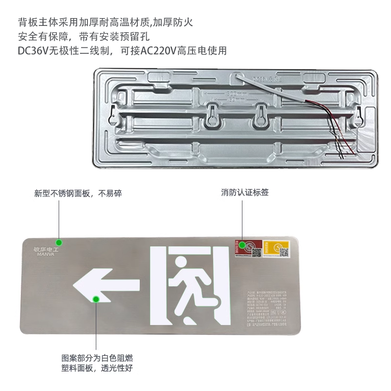 敏华220v超薄不锈钢安全出口36V应急标志指示灯A型低压疏散标志灯