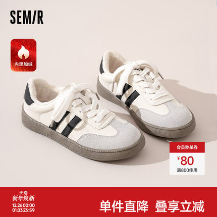 Semir女鞋德训鞋2025秋冬新款小白鞋加绒板鞋百搭运动休闲鞋子