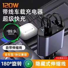 昊界车载充电器120w一拖四超级快充可伸缩汽车点烟器逆变器插座