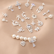 铜镀厚银镶锆石捕梦网吊坠手工diy手链隔珠月亮流苏小滴溜挂件