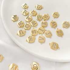 14K包金双吊字母铜镶锆石水晶diy手链项链手作材料配件