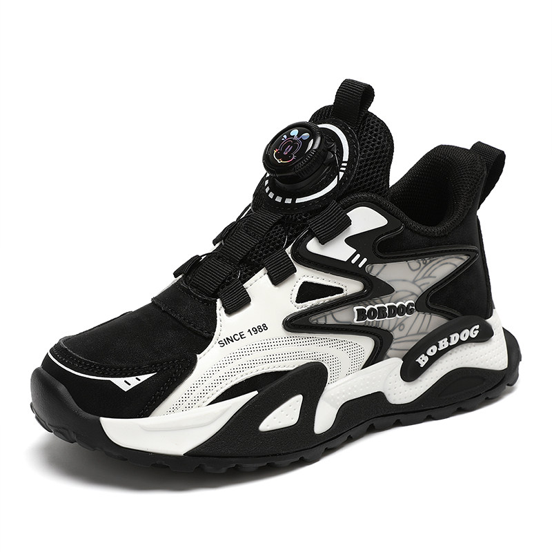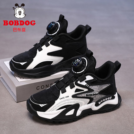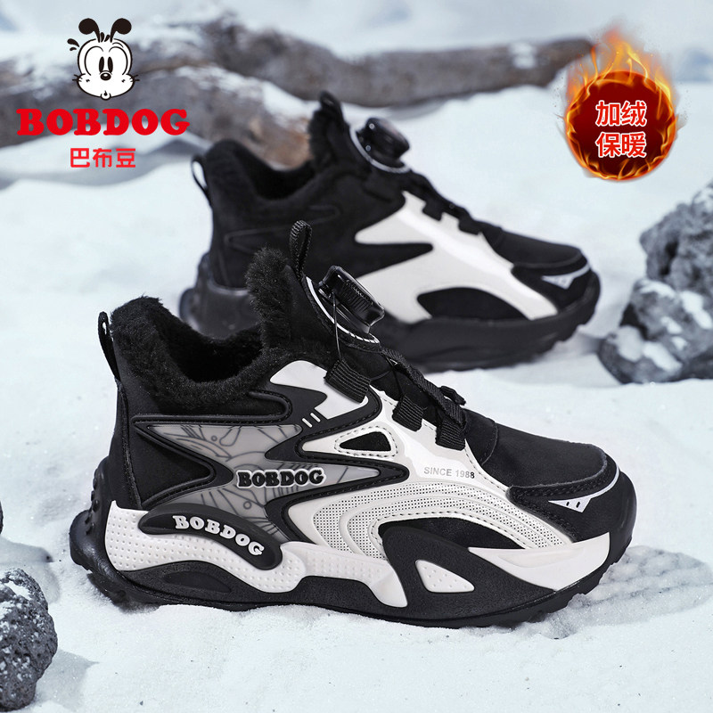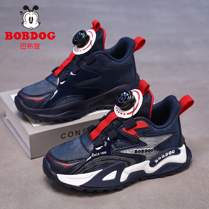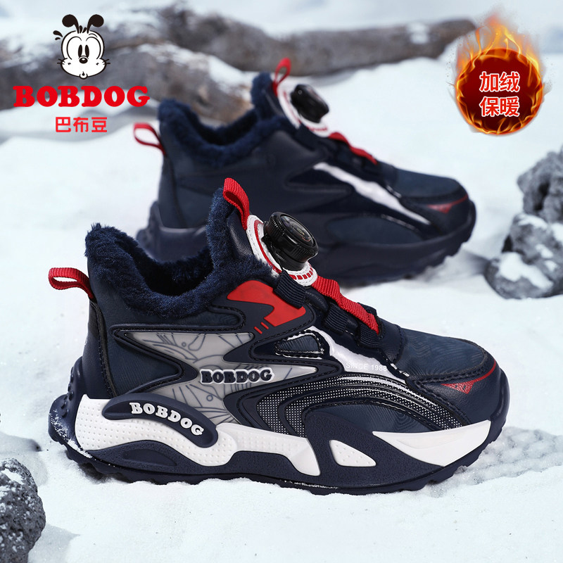 巴布豆男童鞋子2025新款秋冬季运动鞋皮面防水小中大童儿童跑步鞋
