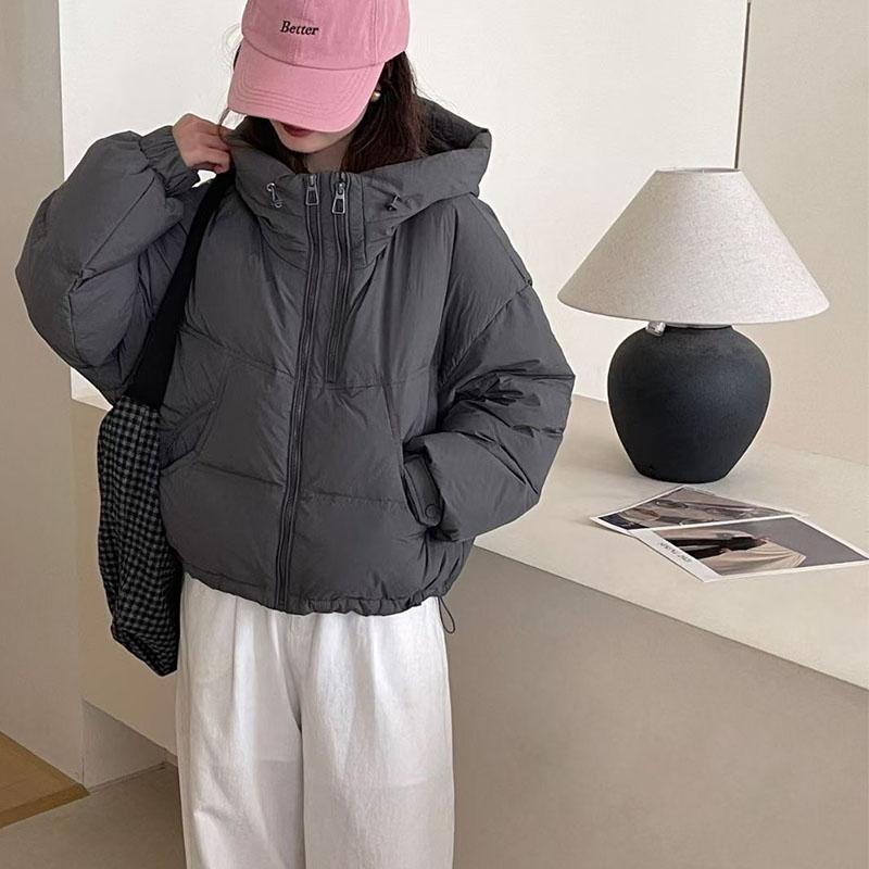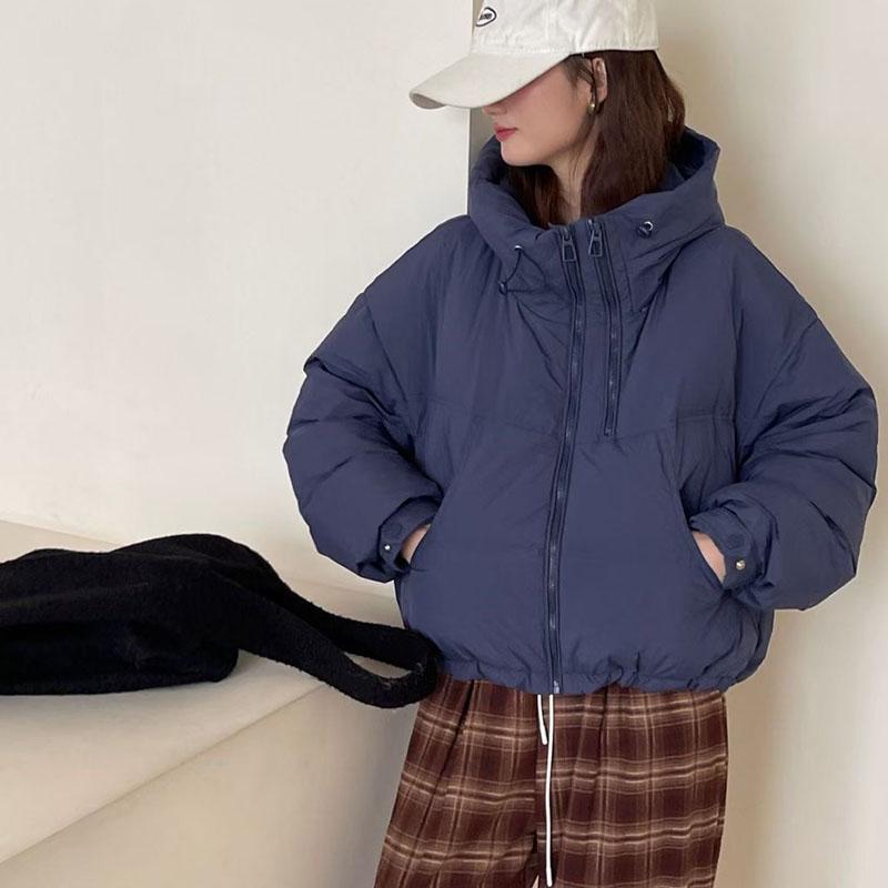 双拉链连帽加厚棉服女韩版休闲夹克面包服2025新款小个子短款外套