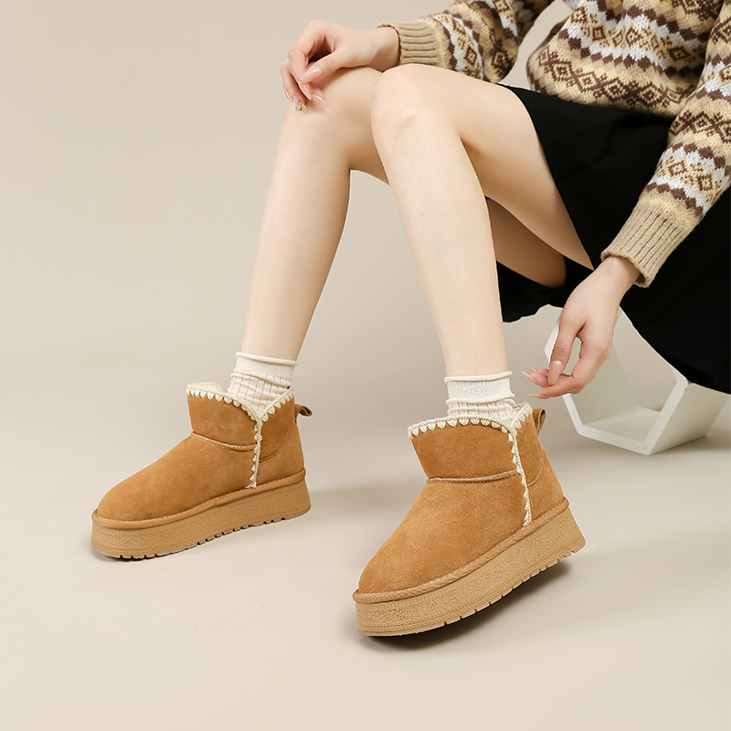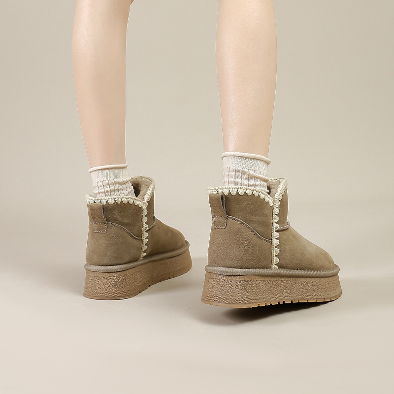 Baidu百渡新款冬季厚底雪地靴女棉鞋加厚加绒保暖棉鞋增高短靴