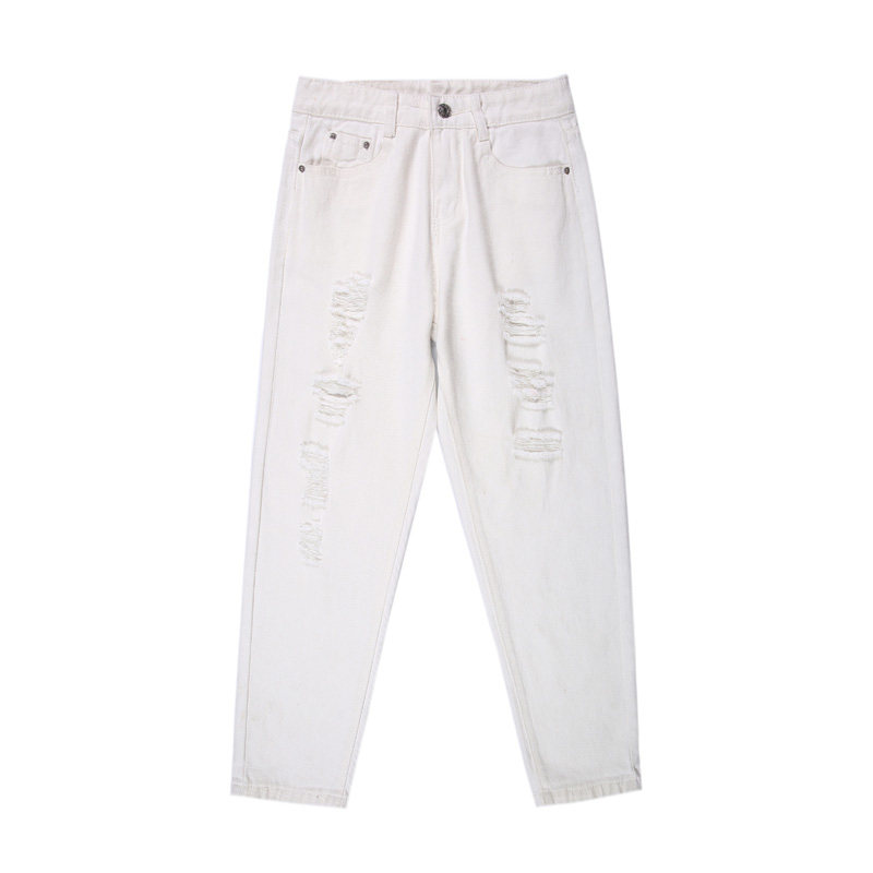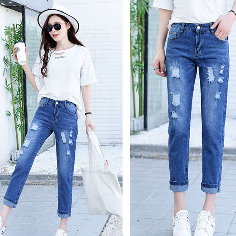 破洞牛仔裤九分裤高腰乞丐哈伦裤