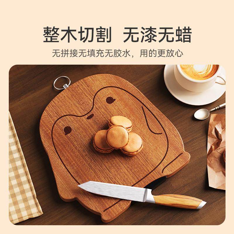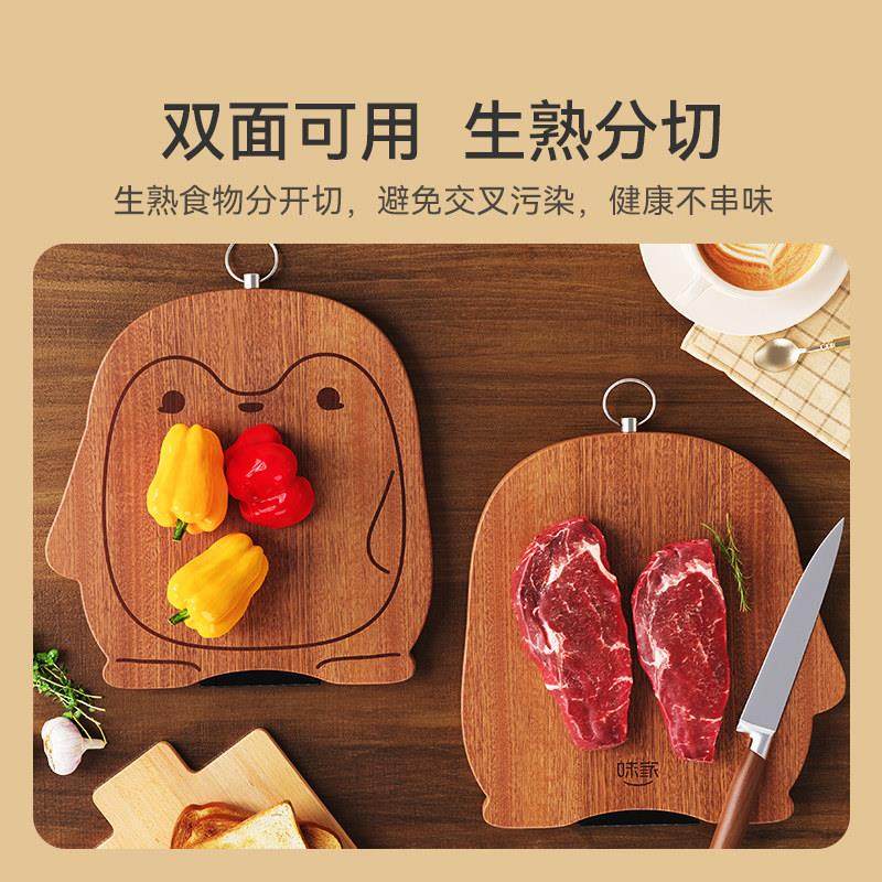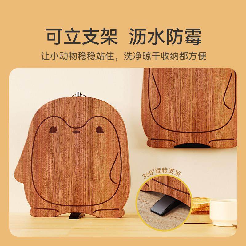 味家企鹅造型乌檀木菜板抗菌防霉家用可爱辅食切菜板可立实木砧板