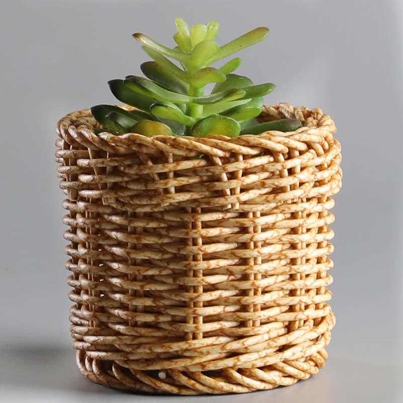 Kens仿藤编桌面遥控器口红化妆刷收纳盒可爱圆形笔筒茶配收纳筐