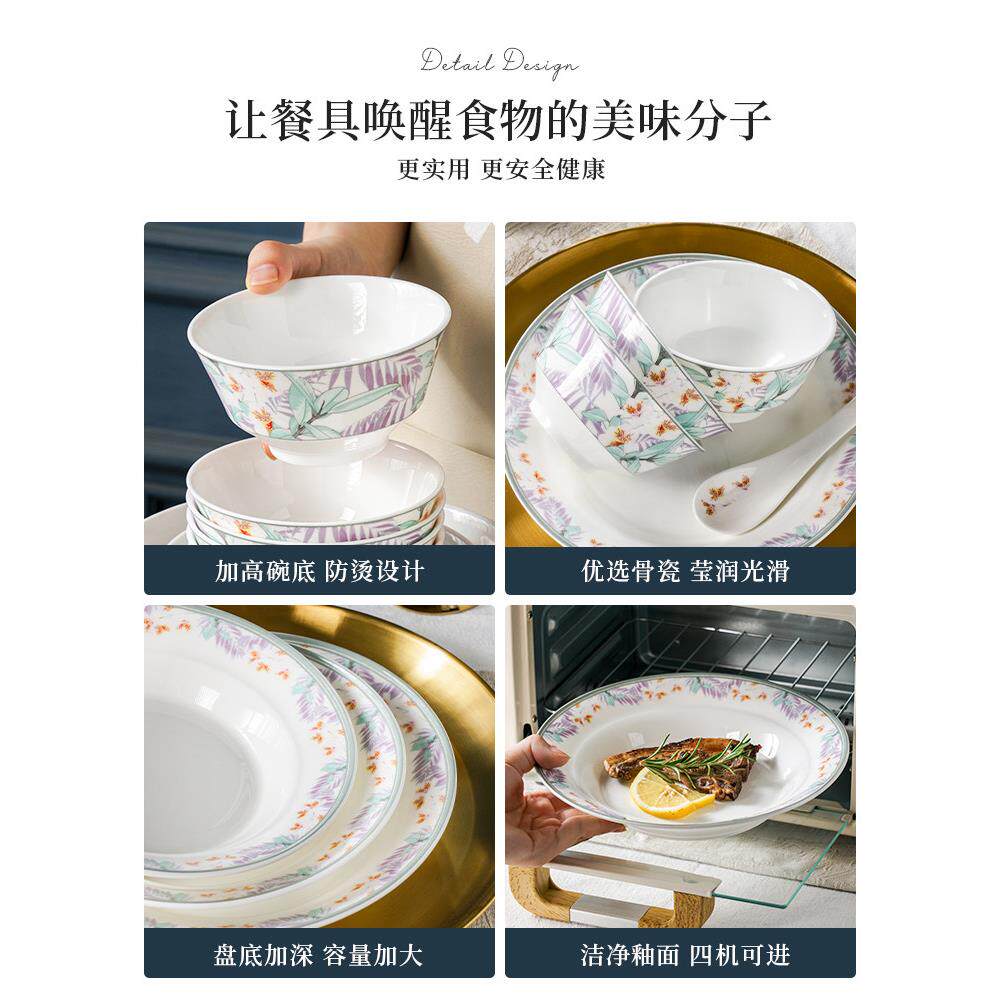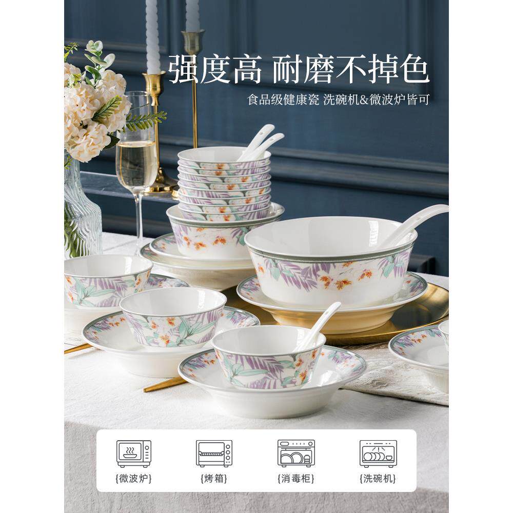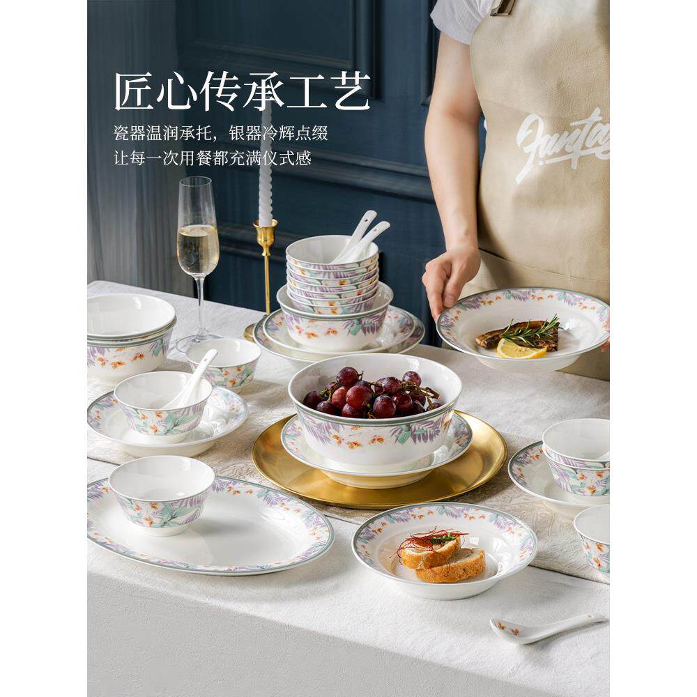 松发瓷器中式骨瓷餐具套装家用碗盘组合中式套装乔迁新居礼盒