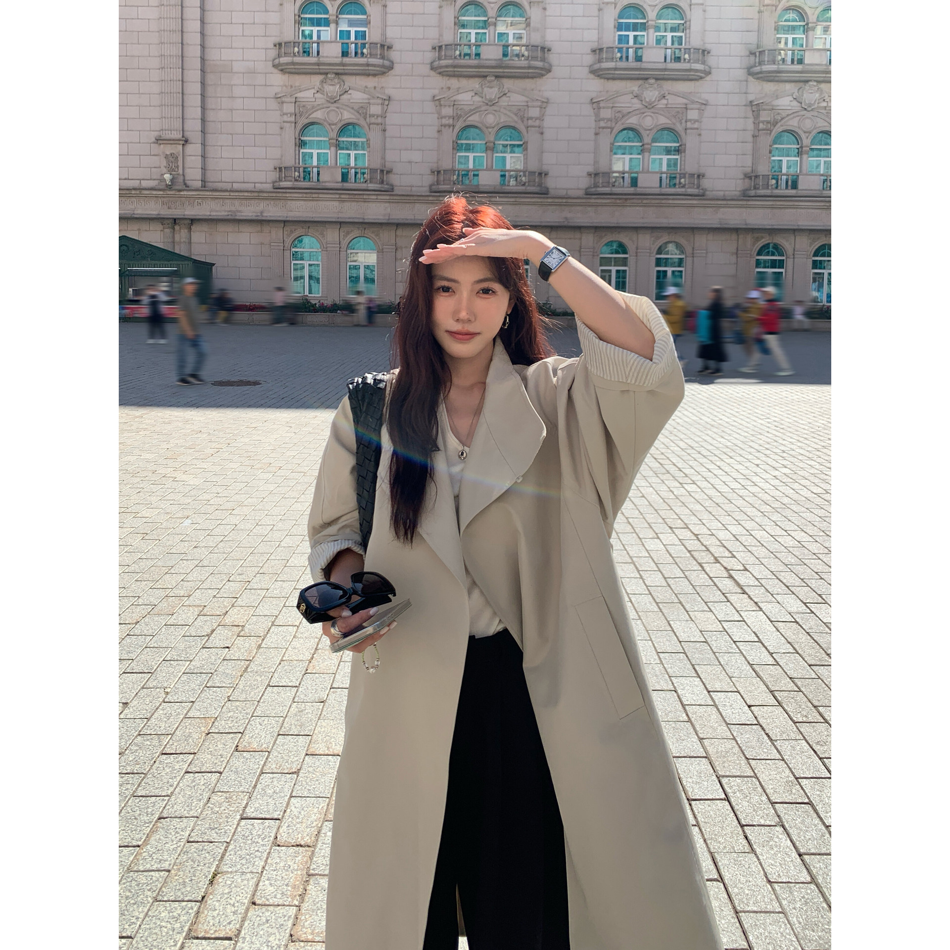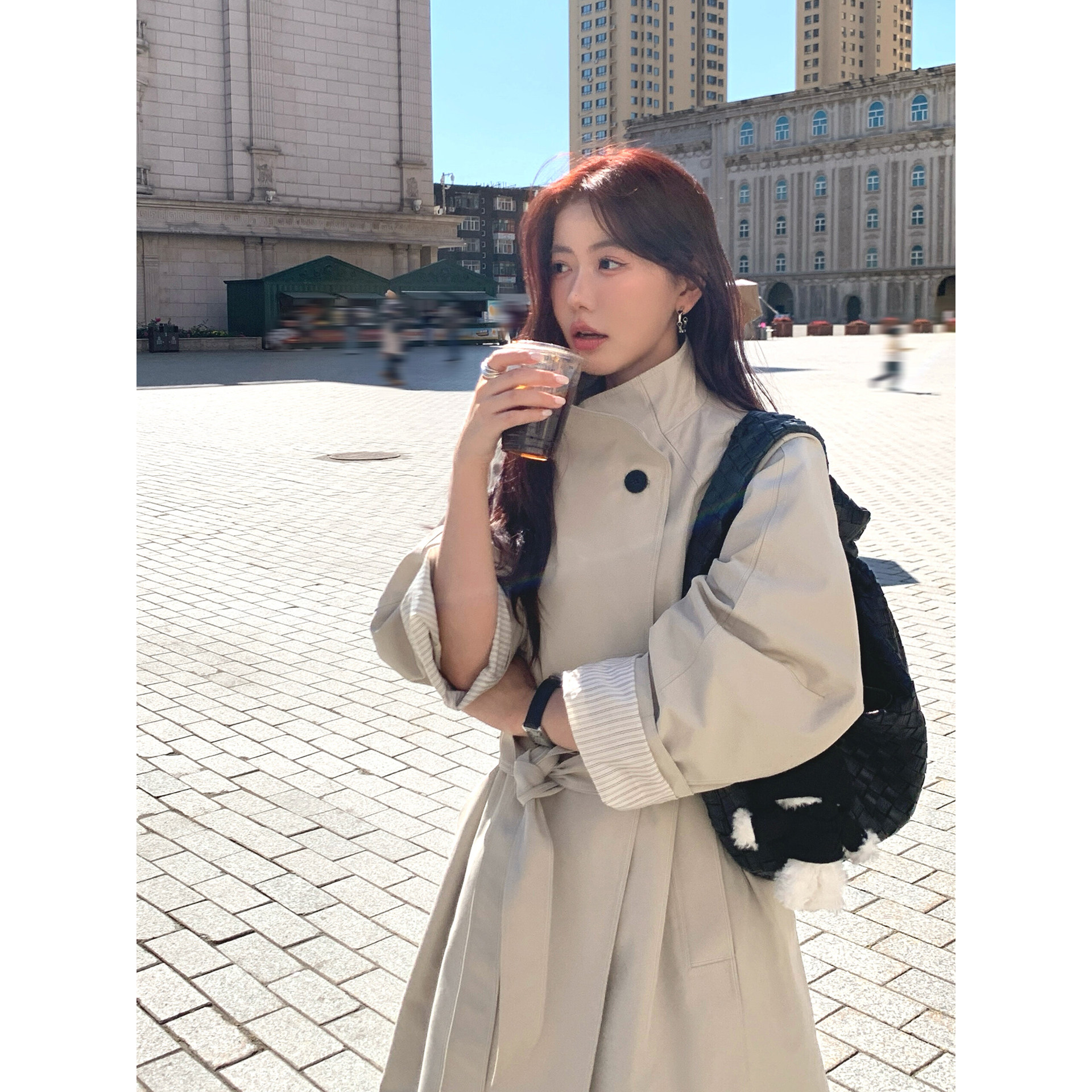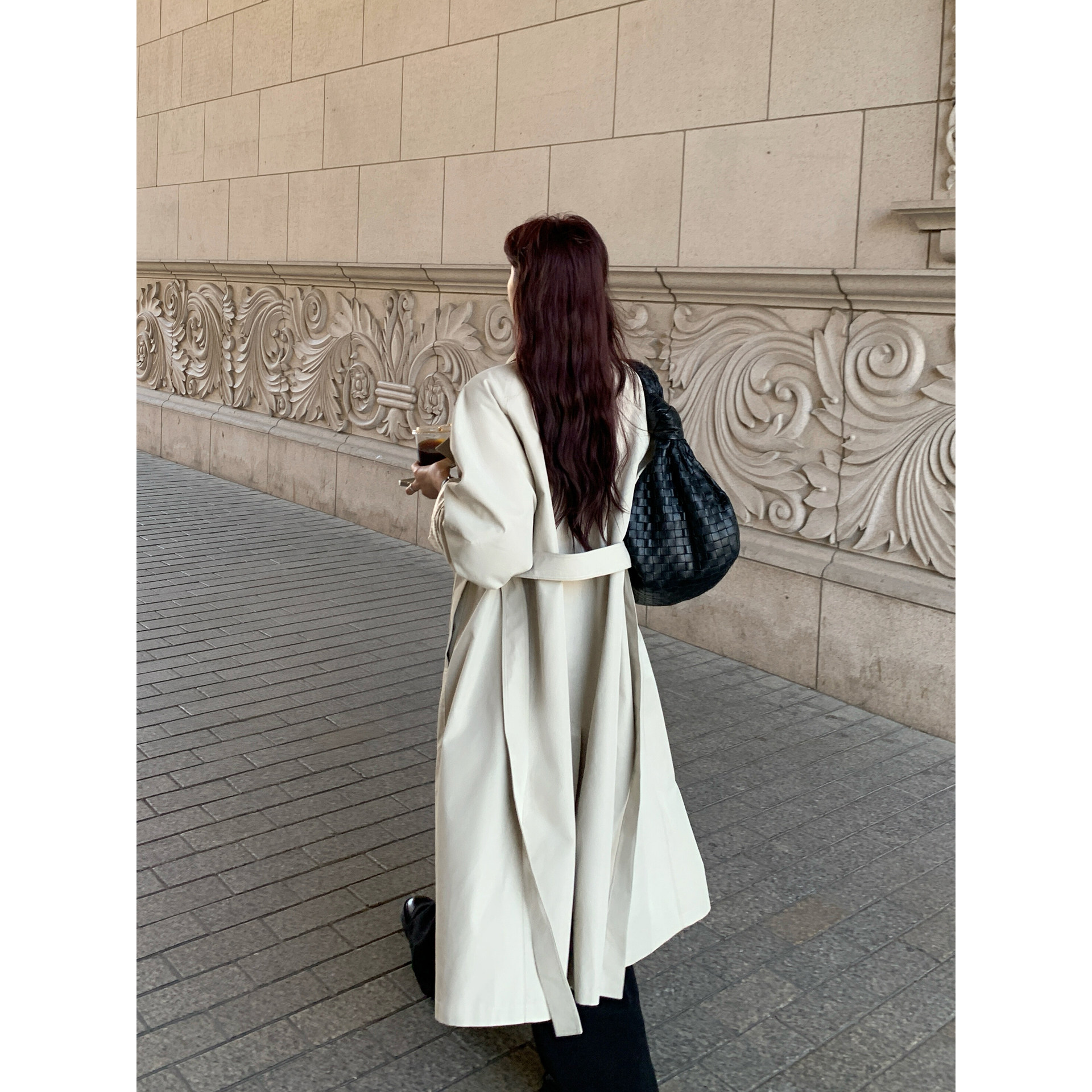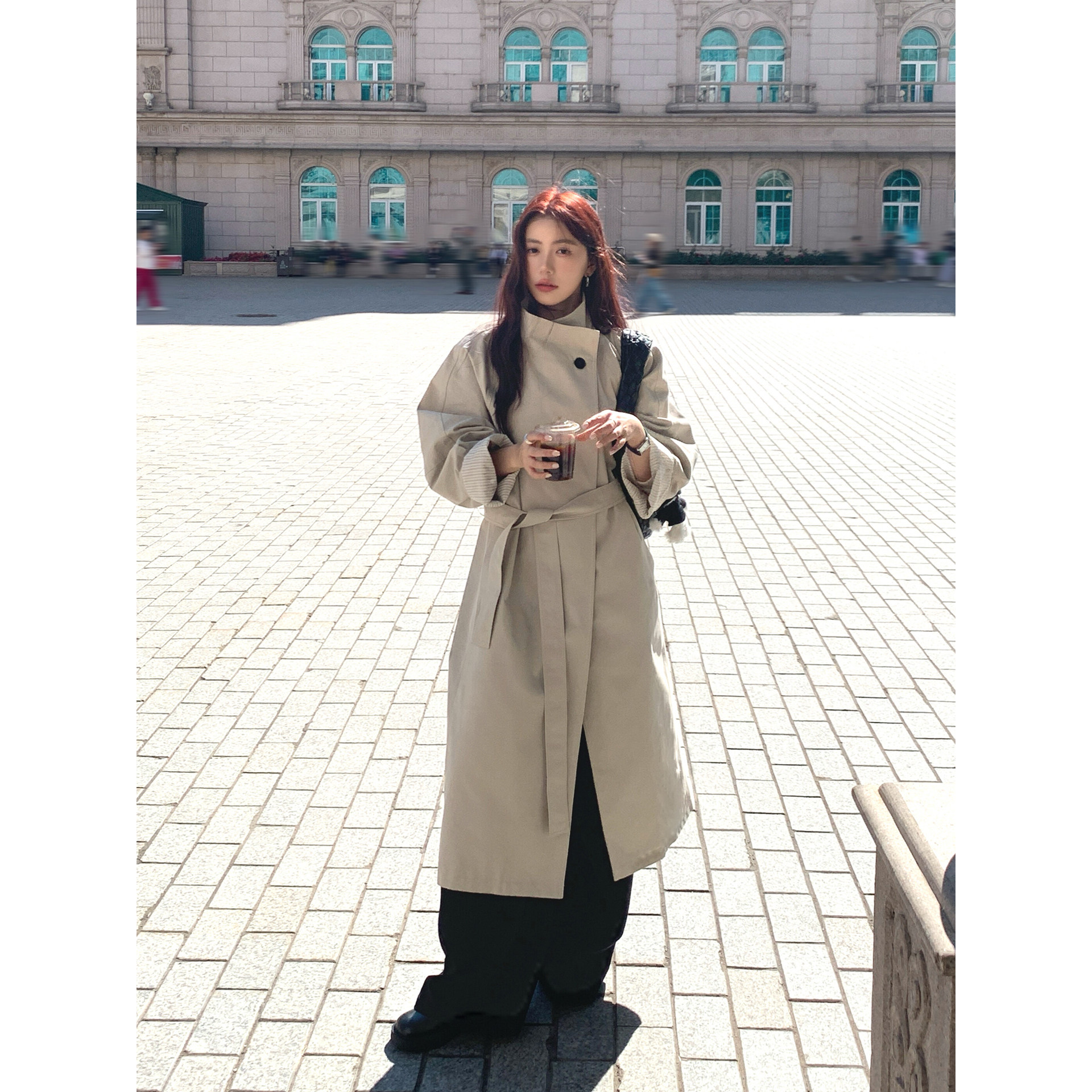 Halo Luu 白色风衣外套女秋季2025新款韩系立领设计感中长款大衣
