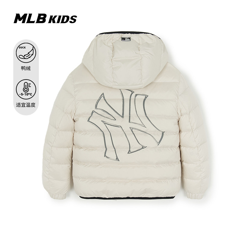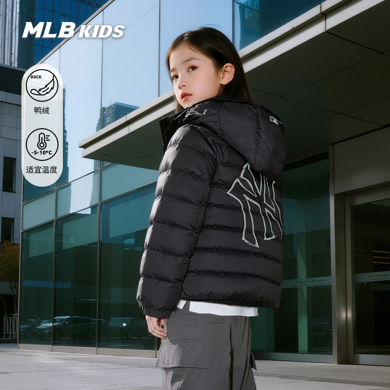 25新款MLB儿童羽绒服男女童NY大标印花连帽运动棉羽外套7ADJB2156
