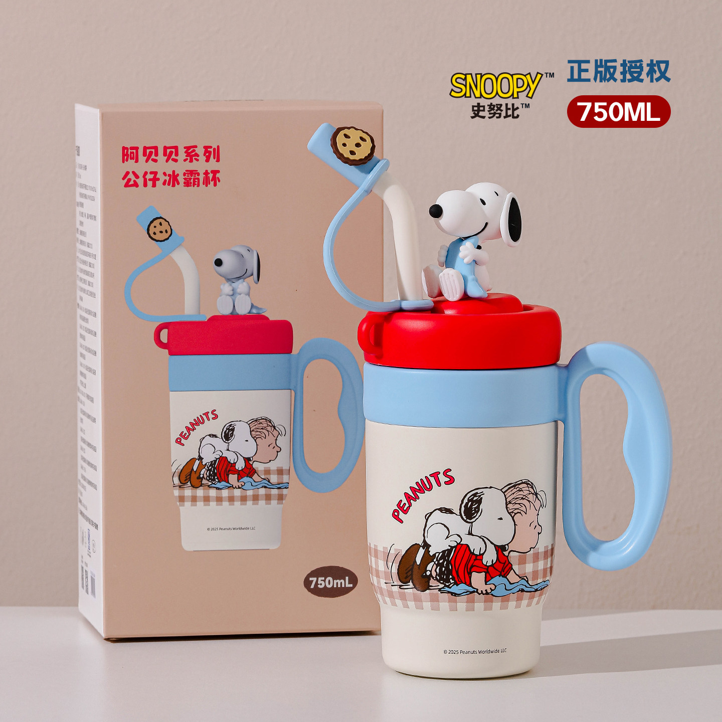 SNOOPY史努比保温杯公仔冰霸水杯子吸管高颜值大容量咖啡吸管杯